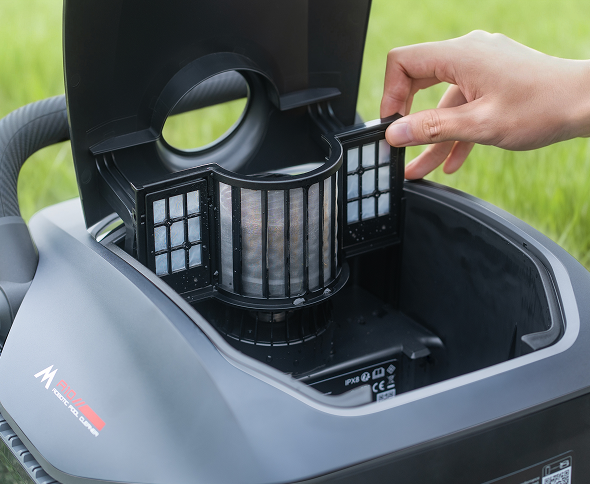 Aangedreven door drie zeer efficiënte borstelloze motoren en een tweesporig aandrijfsysteem, circuleert de reiniger het water in een mum van tijd door het hele zwembad. De spiraalborstel verwijdert en vangt zowel fijn als grover vuil op.