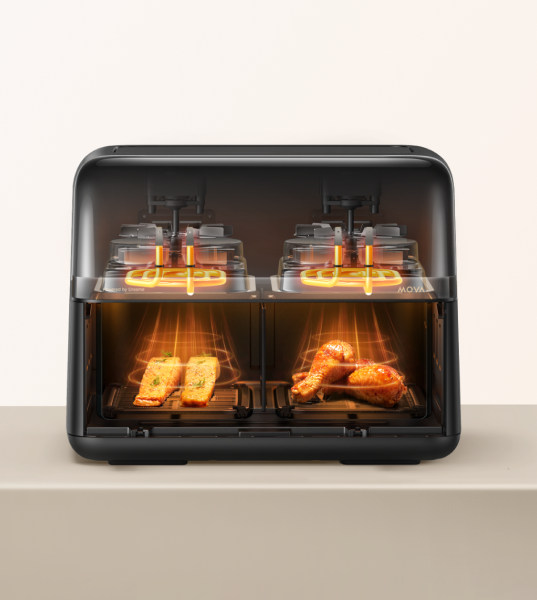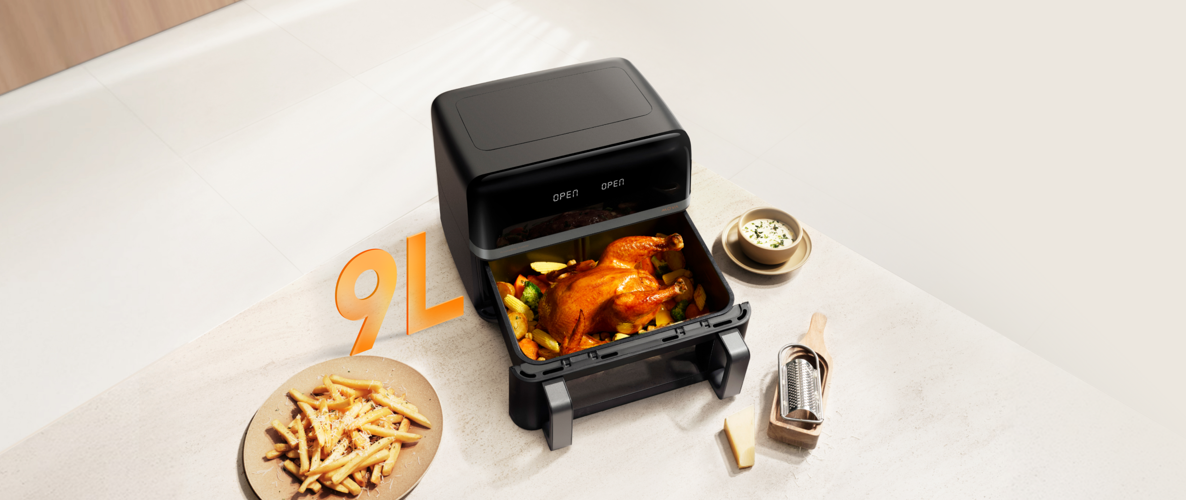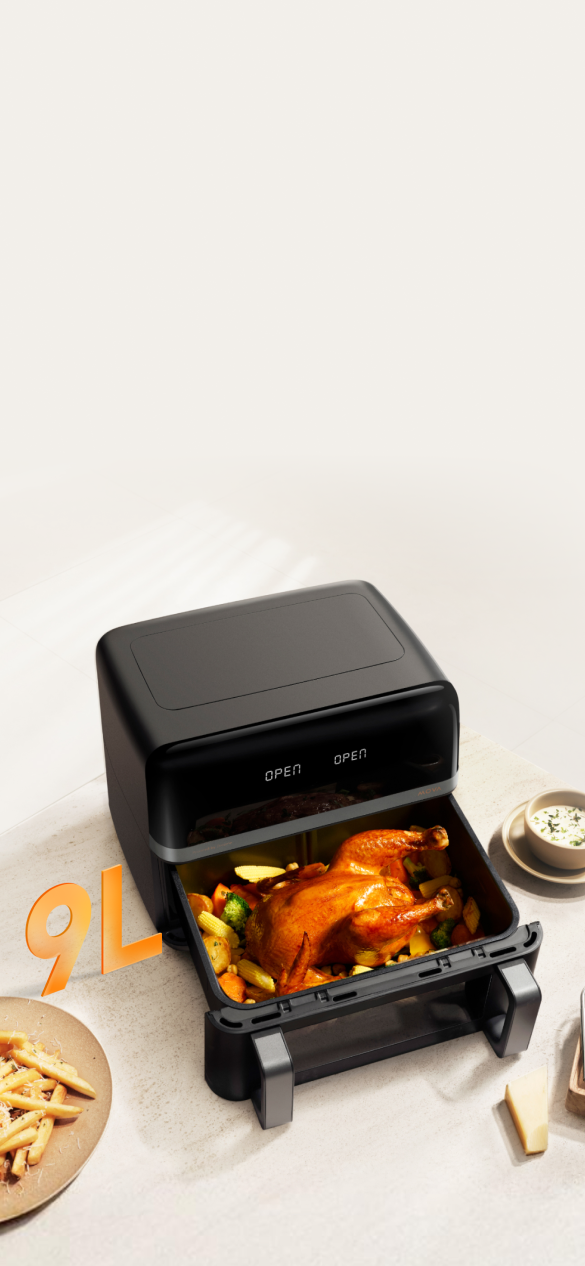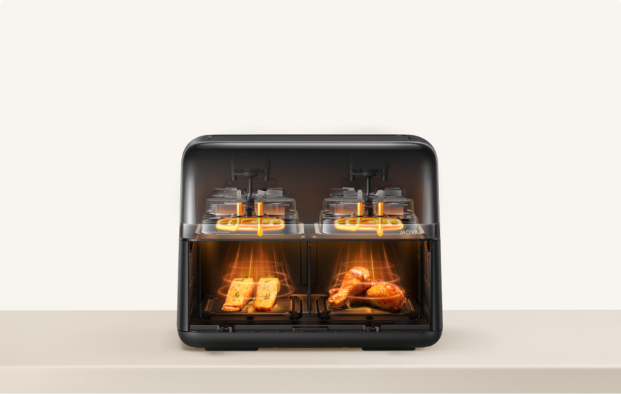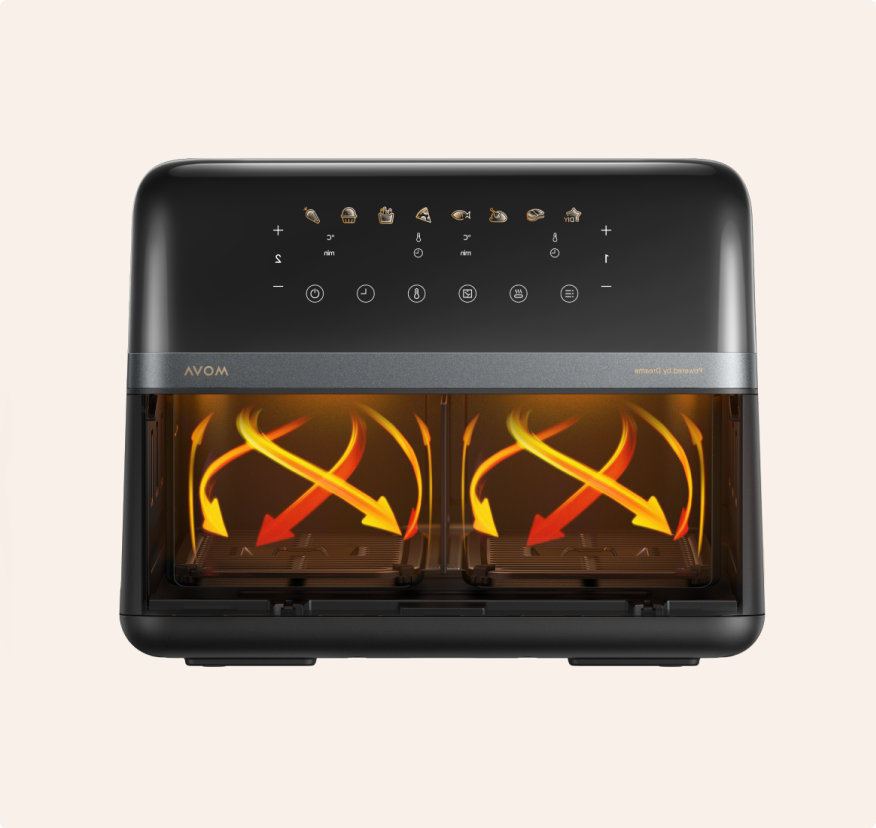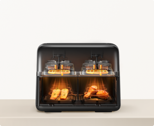 We gebruiken geavanceerde 3D-verwarmingstechnologie om snel een knapperig effect te krijgen en tegelijkertijd vocht vast te houden, waardoor de buitenkant van uw eten knapperig en de binnenkant zacht en mals blijft. De bredere ventilatiegaten van de grillpannen zorgen voor een soepelere luchtstroom, om uw gerecht sneller knapperig te maken.