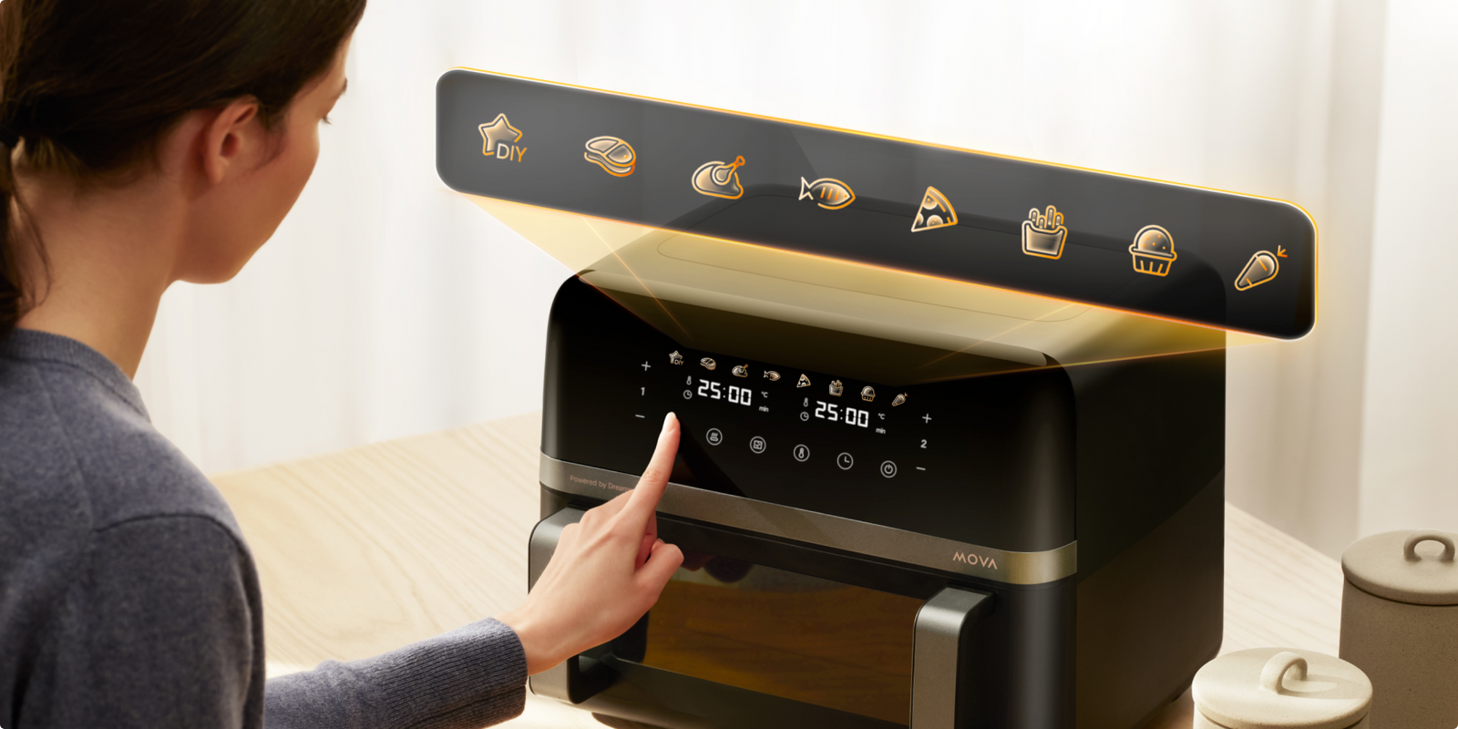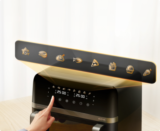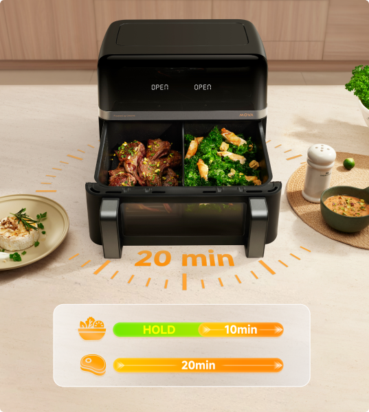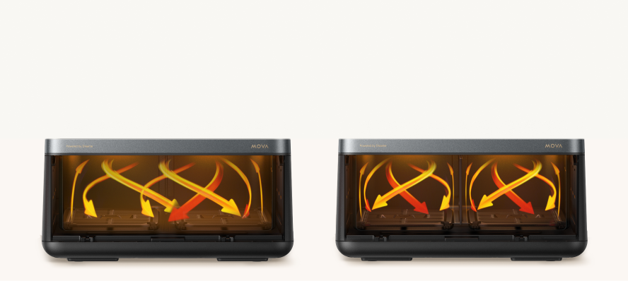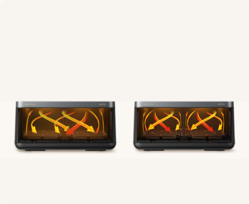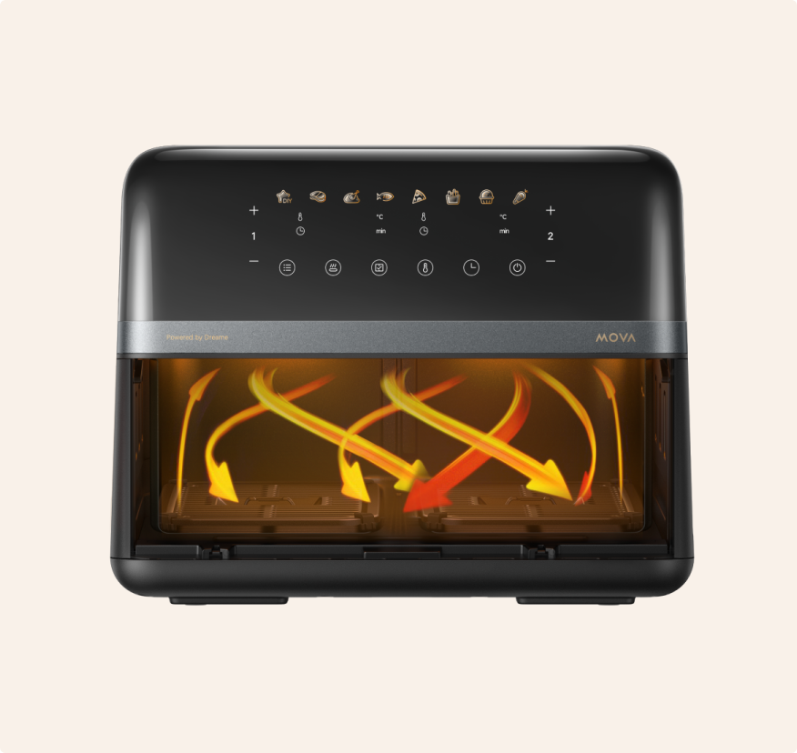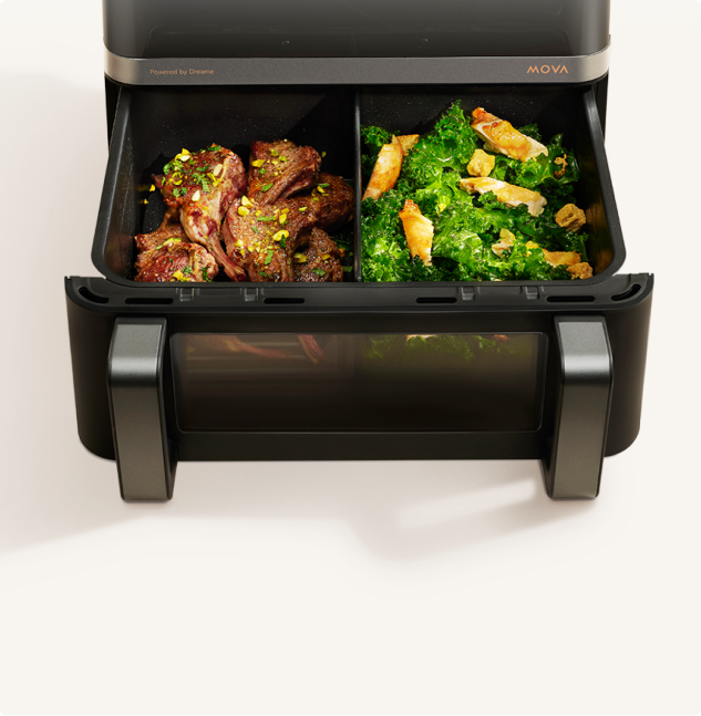 We gebruiken geavanceerde 3D-verwarmingstechnologie om snel een knapperig effect te krijgen en tegelijkertijd vocht vast te houden, waardoor de buitenkant van uw eten knapperig en de binnenkant zacht en mals blijft. De bredere ventilatiegaten van de grillpannen zorgen voor een soepelere luchtstroom, om uw gerecht sneller knapperig te maken.