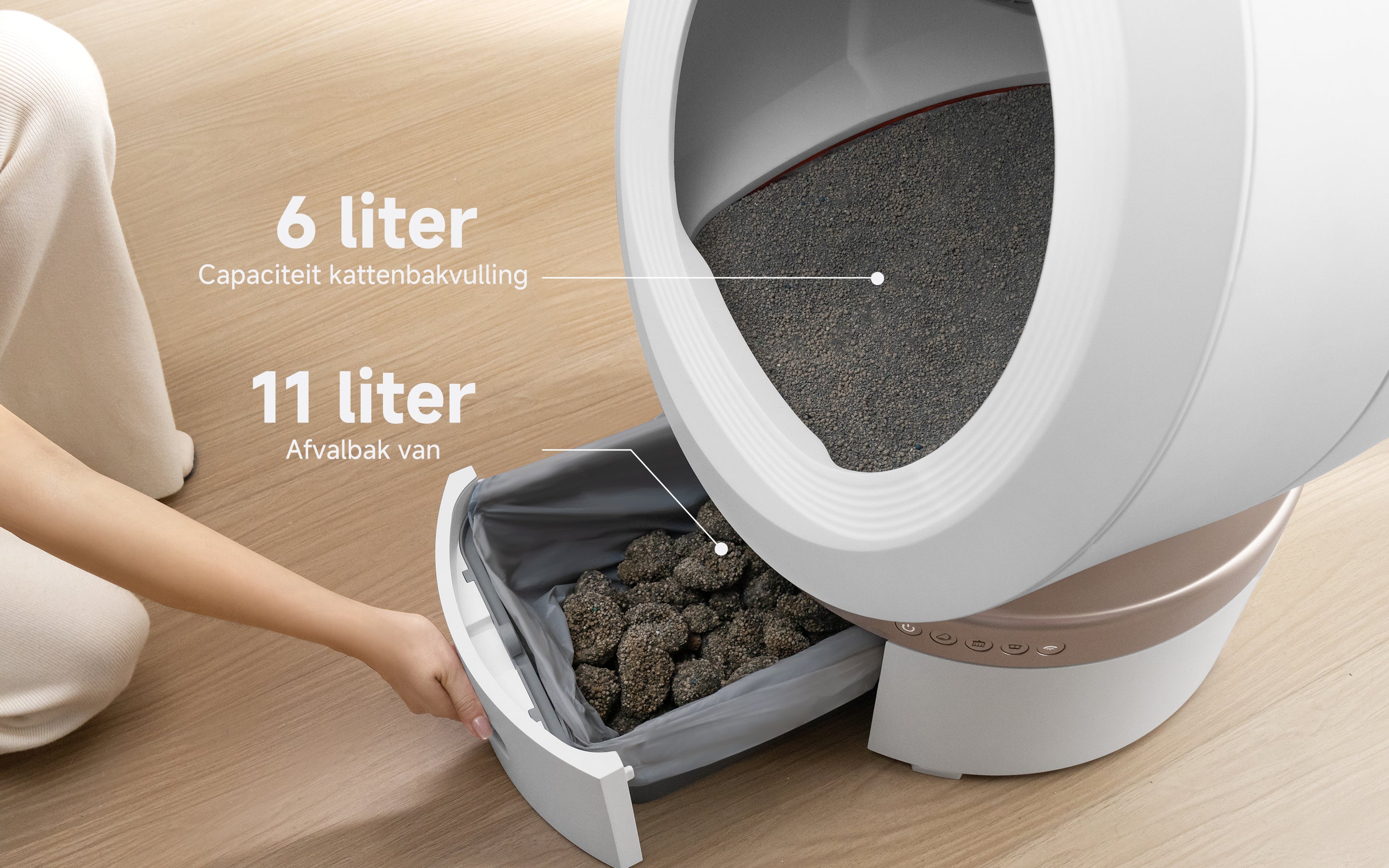 *Soorten kattenbakvulling: geschikt voor veel verschillende kattenbakvullingen, met uitzondering van cassave- en kristalvullingen.
