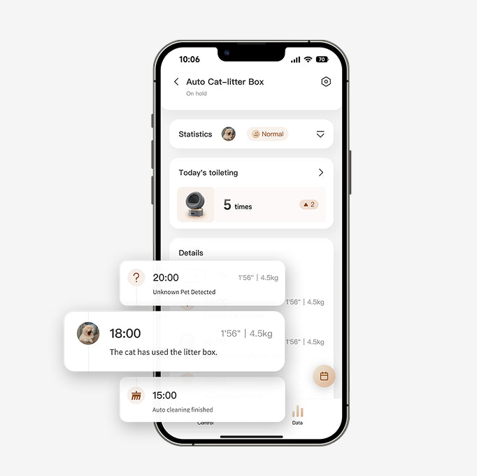 Maakt beheer van meerdere kattenprofielen mogelijk dankzij de gewichtssensor. Houdt per kat apart het gewicht en het toiletgedrag bij. Houd langdurig de gegevens van huisdieren bij en signaleer afwijkingen vroeg om gezondheidsrisico’s te verminderen.