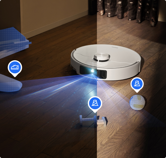 Geniet van soepele navigatie in elke kamer met de P50 Pro Ultra. Deze robotstofzuigers klimmen over drempels tot 22 mm hoog en overwinnen efficiënt richels in de badkamer, terwijl ze alledaagse obstakels zoals kleding, schoenen en meer vermijden.