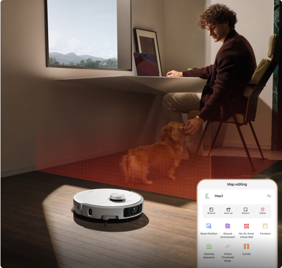 Pas de instellingen van de schoonmaak-app aan zodat ze het beste bij uw huis passen. Stel zones in waar de robot niet mag komen, reinigingsgebieden met gordijnen, of de plaatsing van meubels, voor naadloze controle en een smetteloze ruimte.