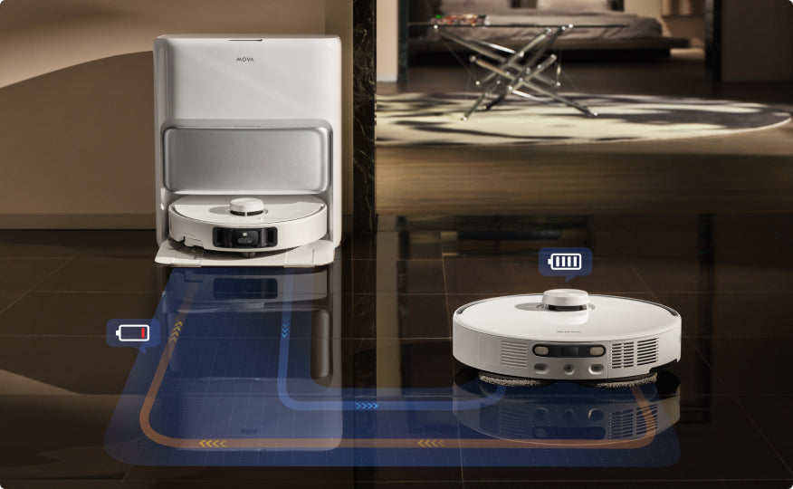 Duik in een continue schoonmaakervaring met de P50 Pro Ultra. Zijn accu van 5.200 mAh is geschikt voor grote oppervlakken in huis, of het nu gaat om het stofzuigen van tapijten of het verwijderen van plakkerige vlekken. De robotstofzuiger keert terug naar het basisstation om op te laden en verder te gaan met schoonmaken, terwijl opladen buiten de piektijden* helpt bij het besparen op de energierekening.