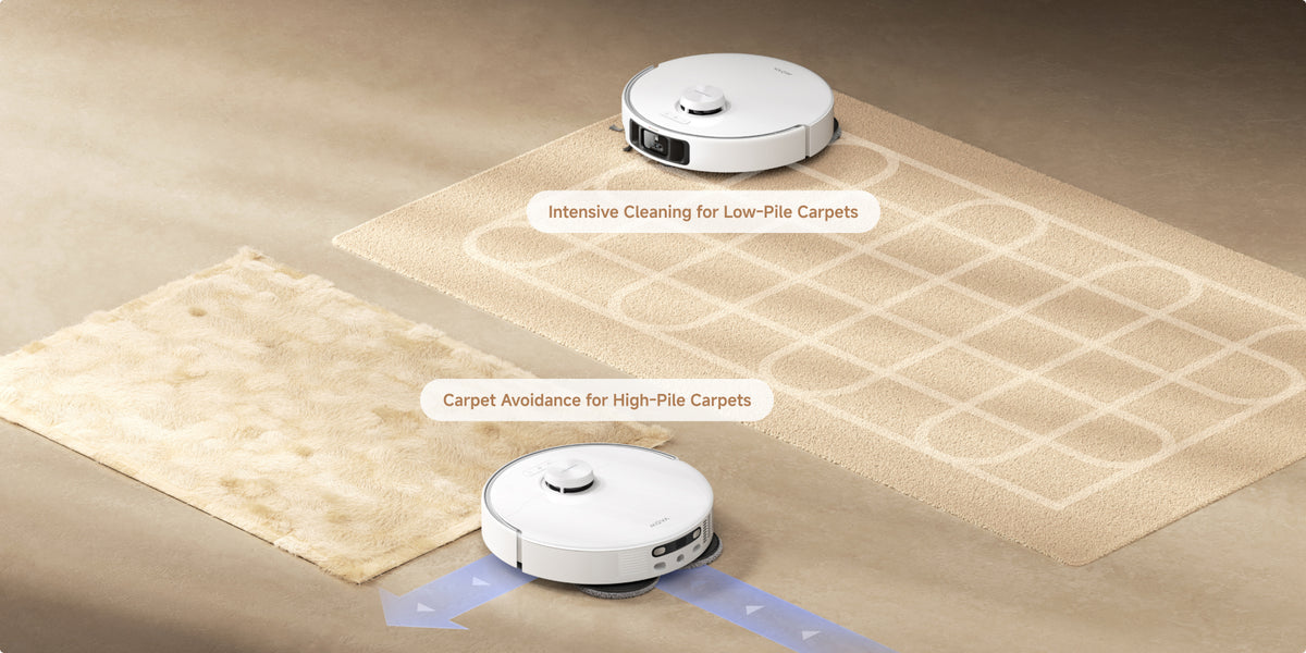 *Voor tapijten met pollen van langer dan 3 mm (0,12 in) raden we u aan de robotstofzuiger in te stellen om middelhoge en hoogpolige tapijten te vermijden via de Dreamehome-app. Zo voorkomt u dat uw tapijt nat wordt.