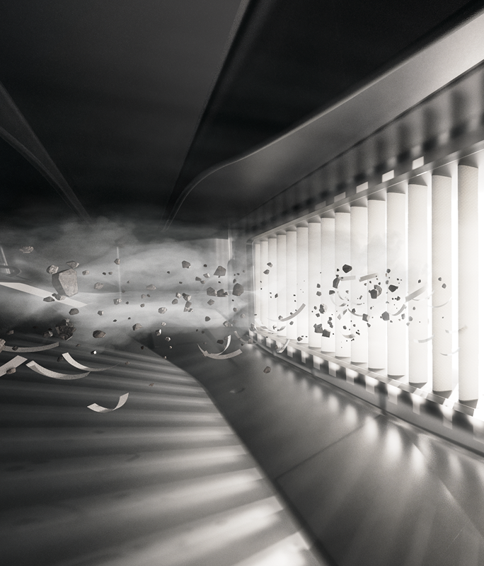 *100% reinigingsefficiëntie bij grote stofdeeltjes: gebaseerd op onze interne labgegevens.