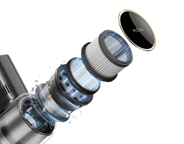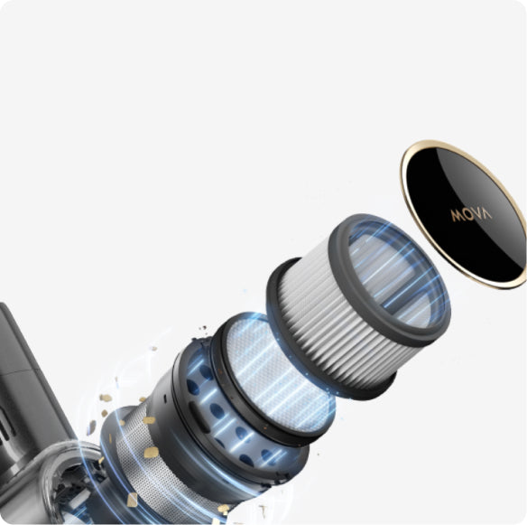 Een meerlaags filtratiesysteem vangt efficiënt fijnstof en deeltjes tot 0,3 μm* op en voorkomt dat ze in de lucht terechtkomen met een filtratie-efficiëntie tot 99,9%*.