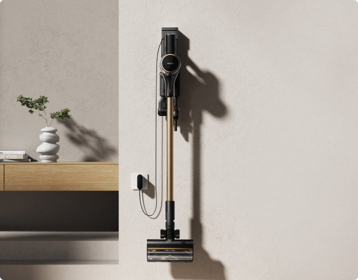 Een aan de muur bevestigde oplaadstandaard zorgt ervoor dat uw stofzuiger verticaal opgeborgen blijft, waardoor ruimte wordt bespaard en u hem op elk moment handig kunt opladen, zodat u niet hoeft te zoeken naar een stopcontact.