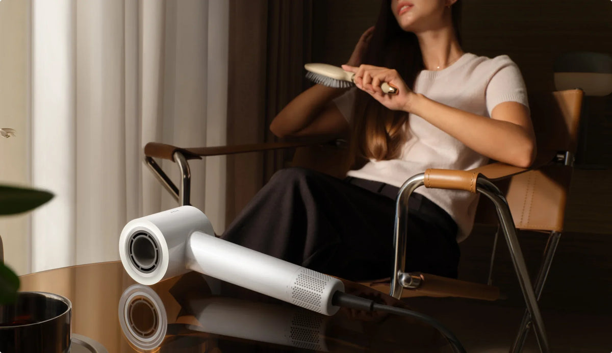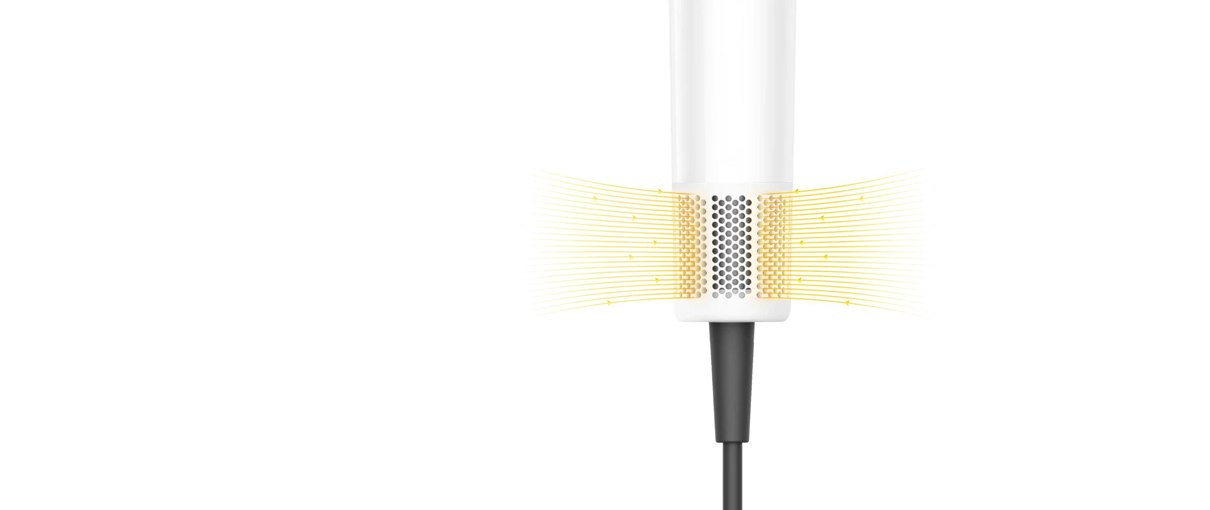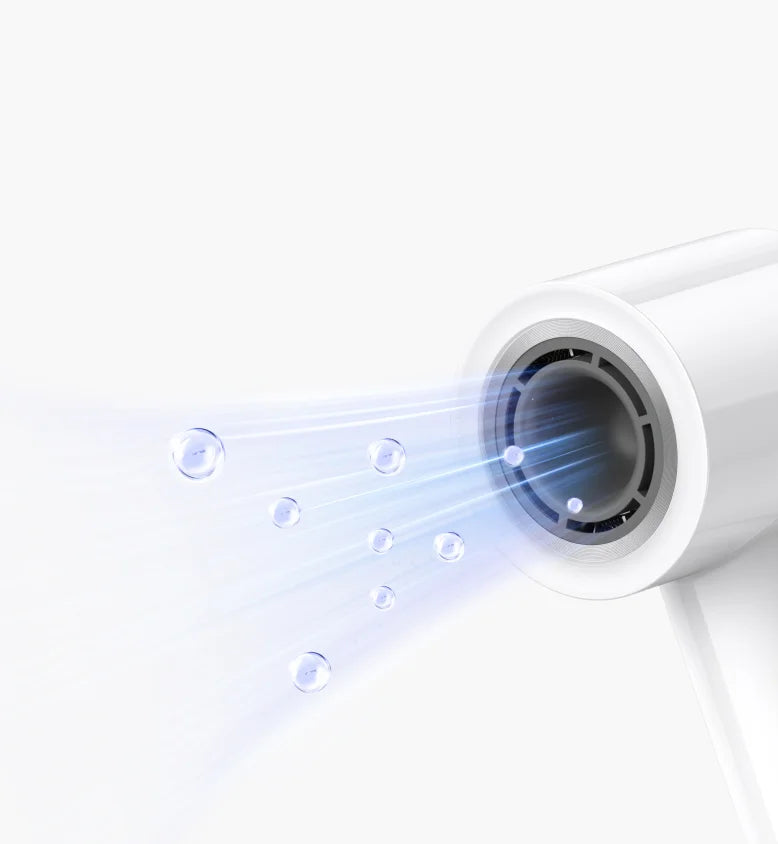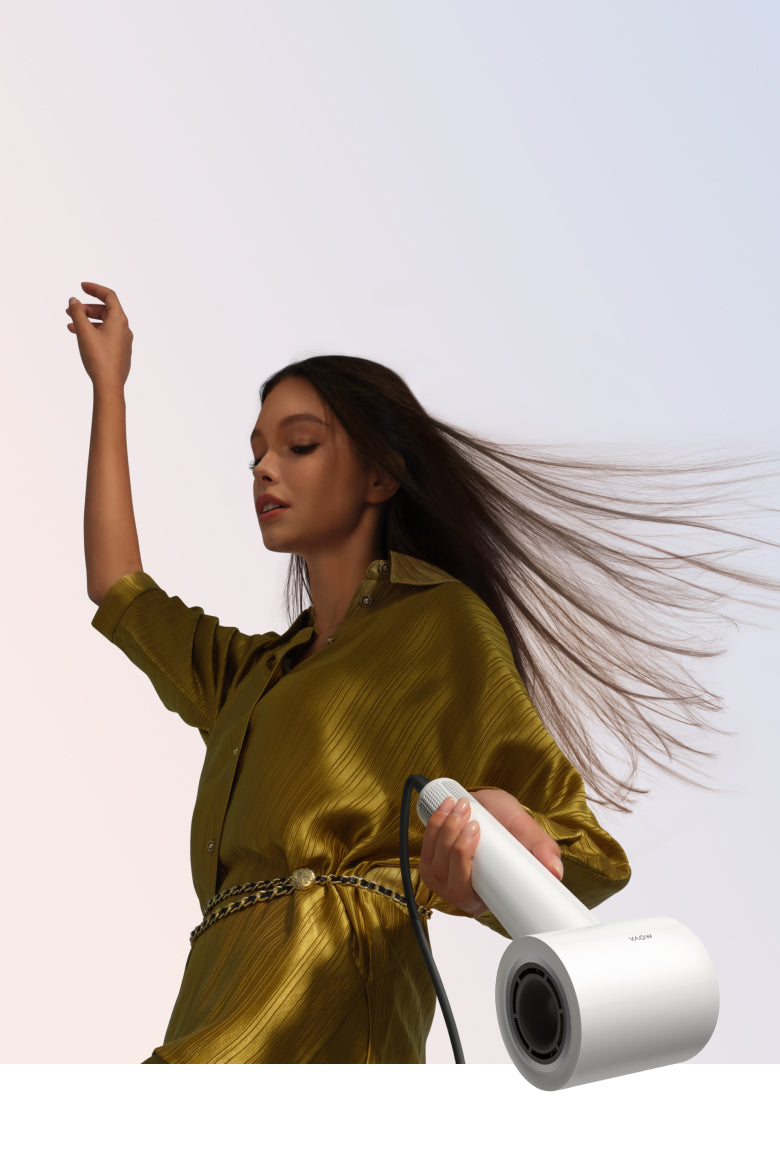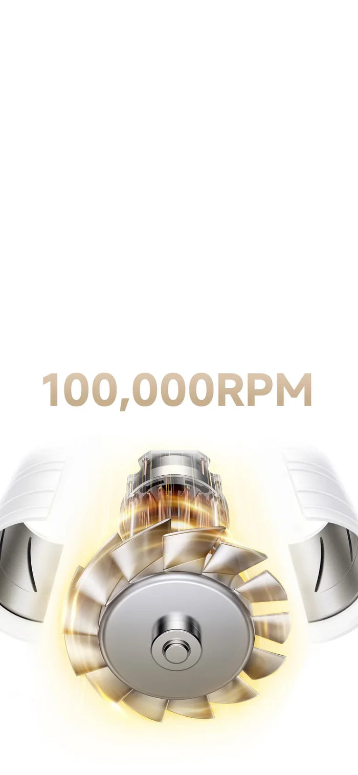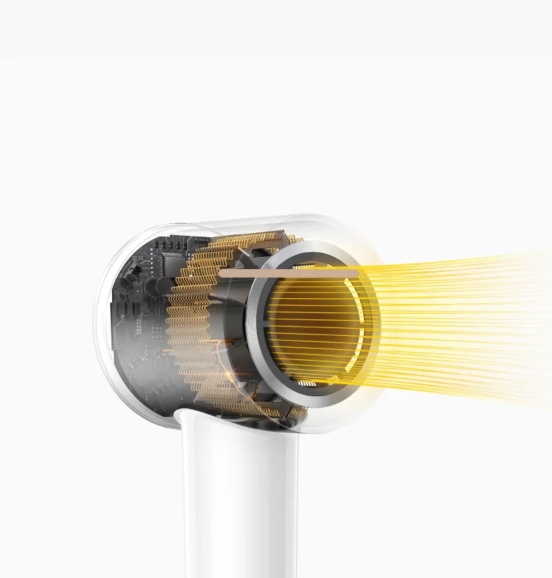 Een motor van 110.000 tpm* en een geoptimaliseerd luchtstroomontwerp verlagen de weerstand. Het concept versnelt het drogen en vermindert hitteschade voor comfort door gebruik te maken van luchtstroom in plaats van intense hitte.