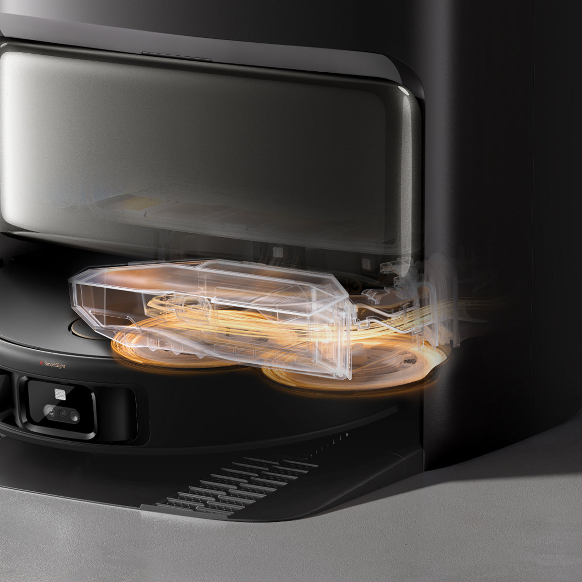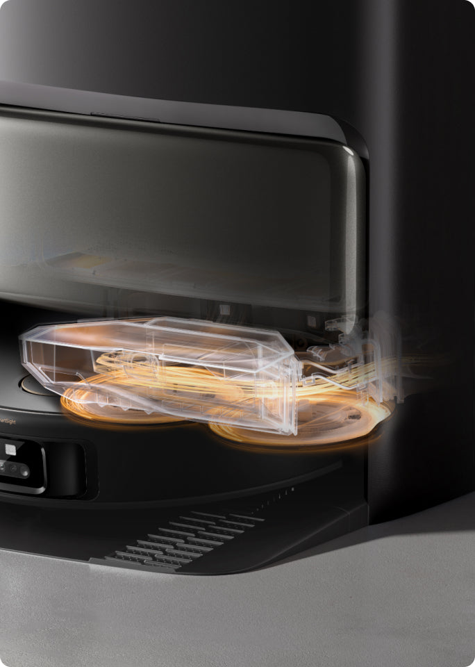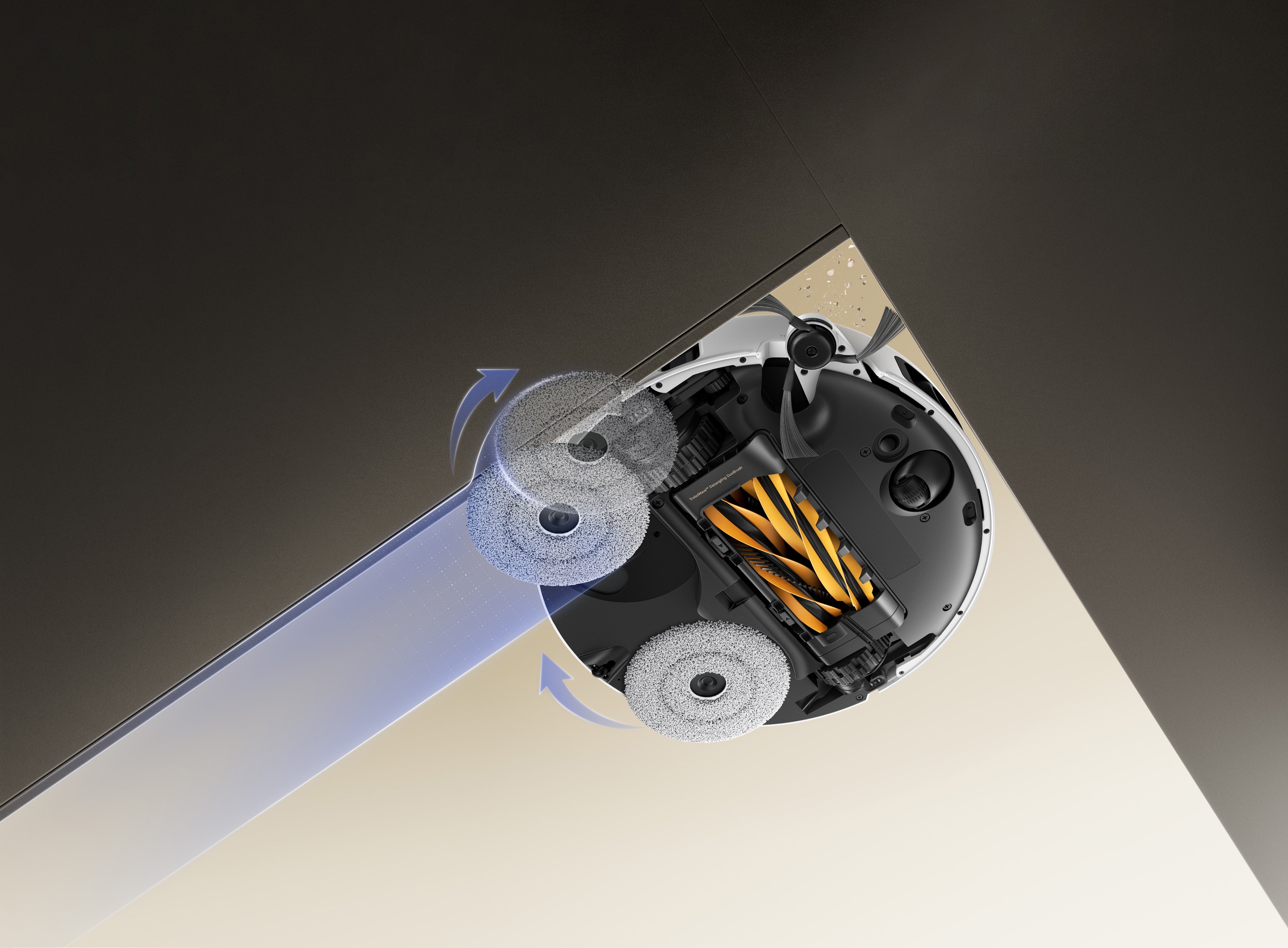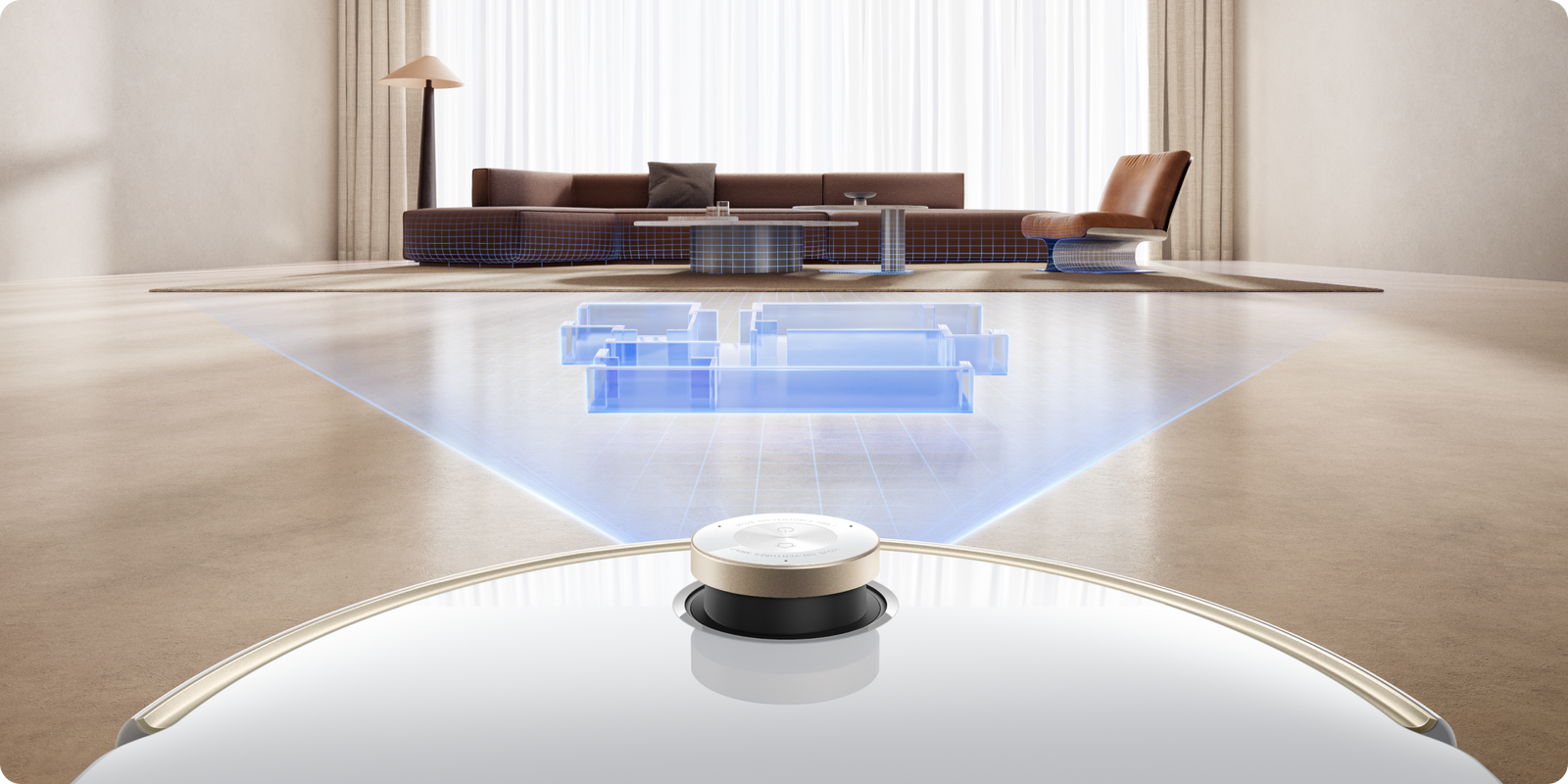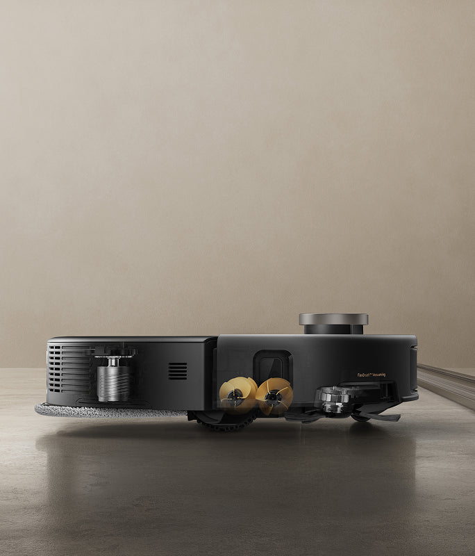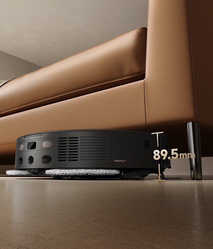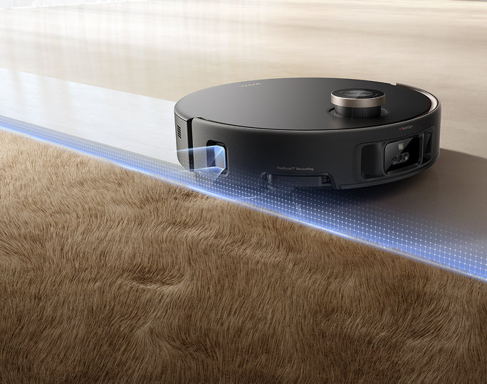 StepMaster™ System features robotic retractable legs that can lift the chassis, allowing it to easily cross over steps, thresholds, door tracks, U-shaped furniture legs, and small obstacles up to 6cm* high. It navigates complex home environments with ease for thorough cleaning and effortless return.