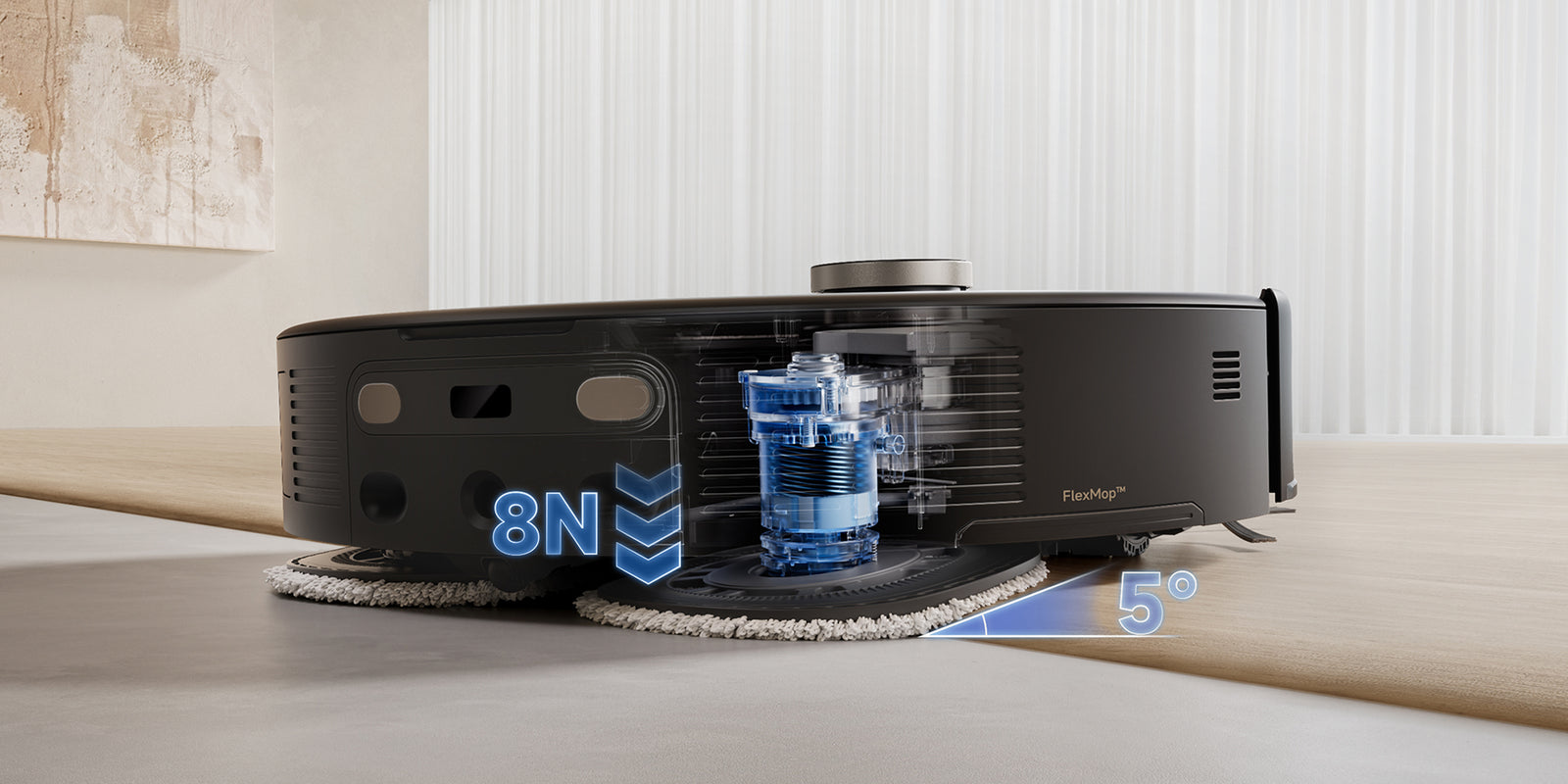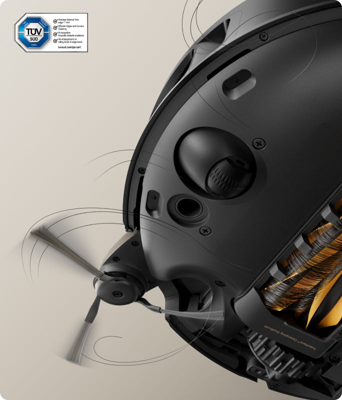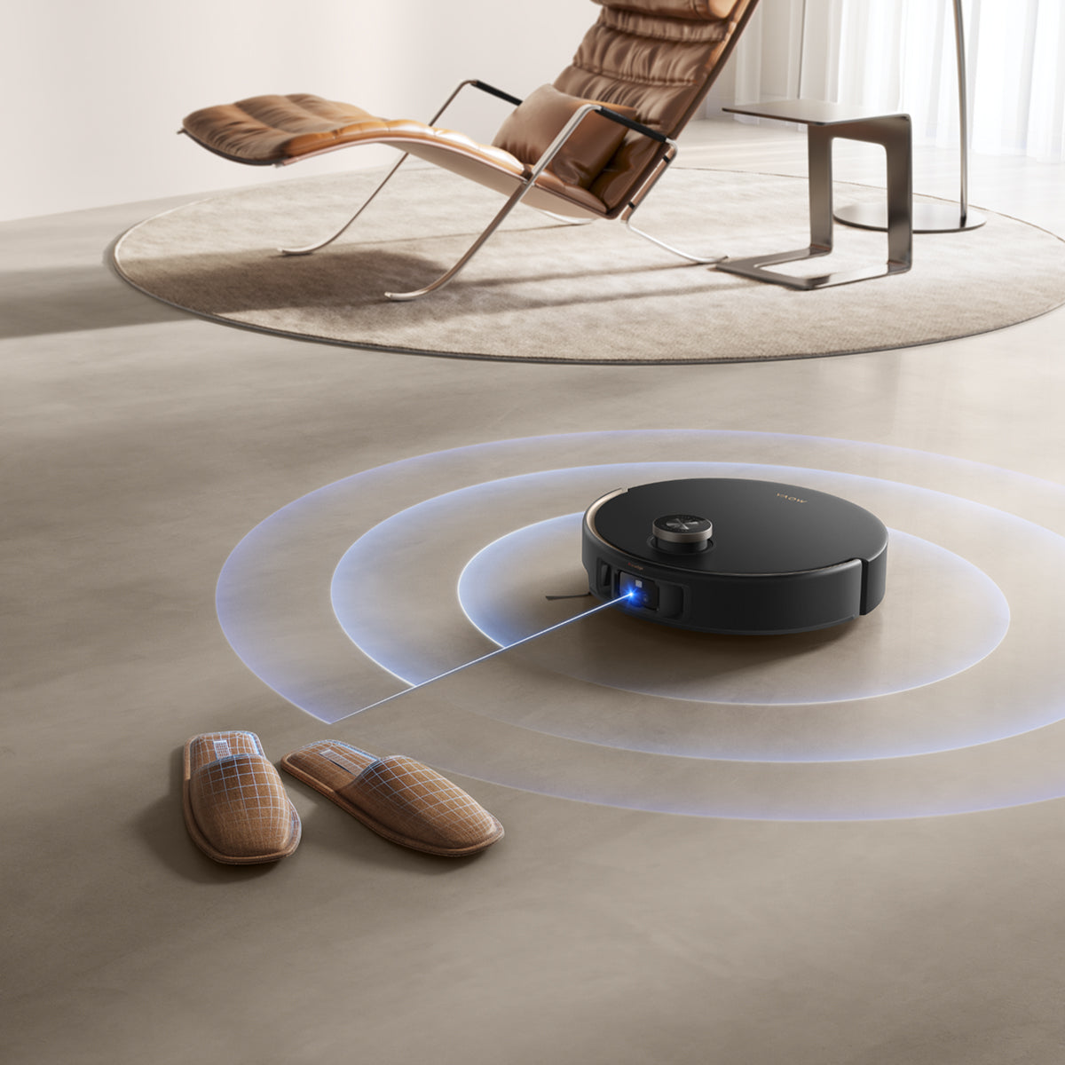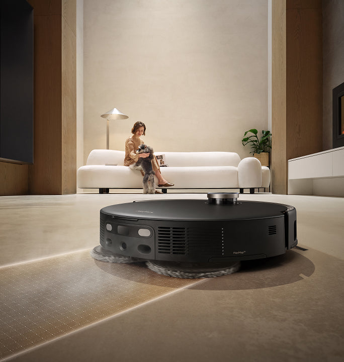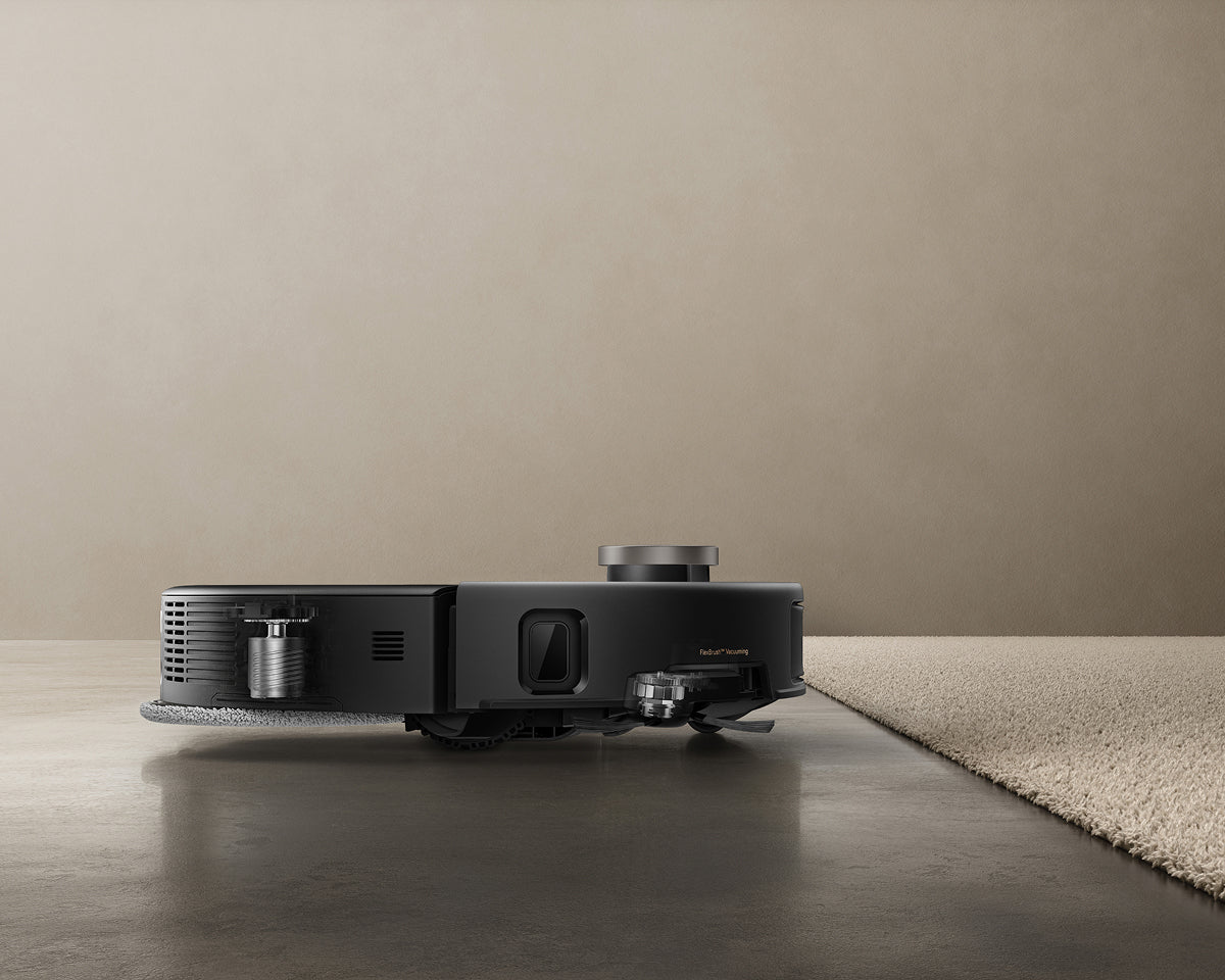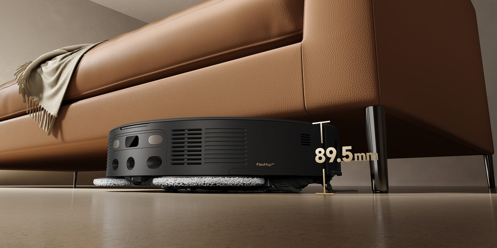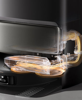 StepMaster™ System features robotic retractable legs that can lift the chassis, allowing it to easily cross over steps, thresholds, door tracks, U-shaped furniture legs, and small obstacles up to 6cm* high. It navigates complex home environments with ease for thorough cleaning and effortless return.