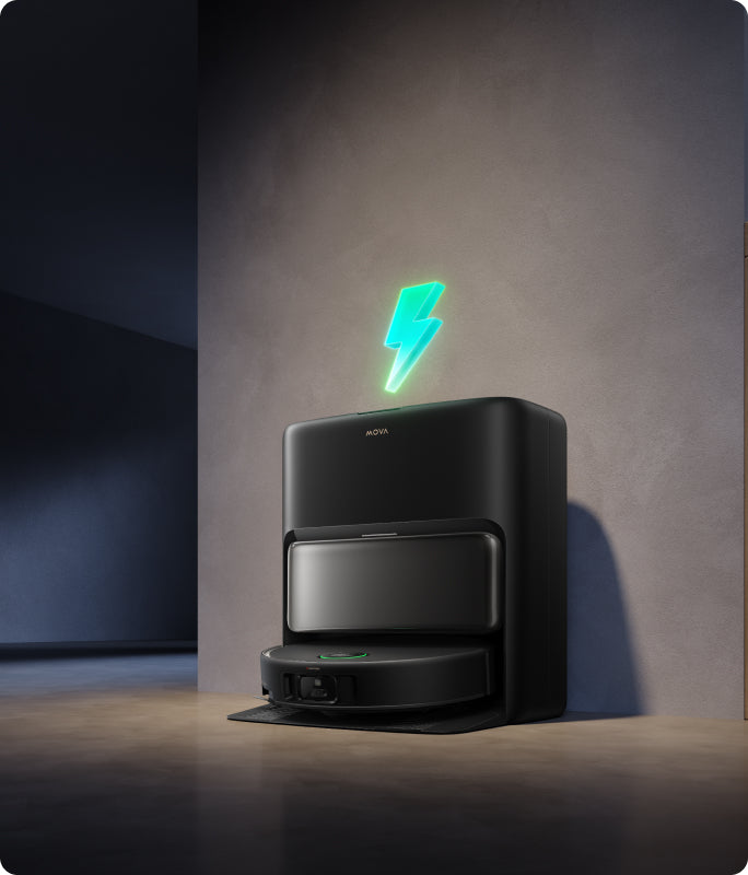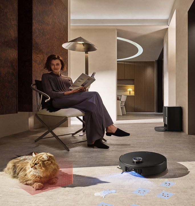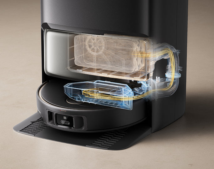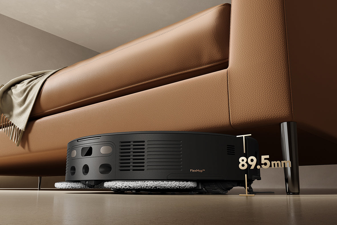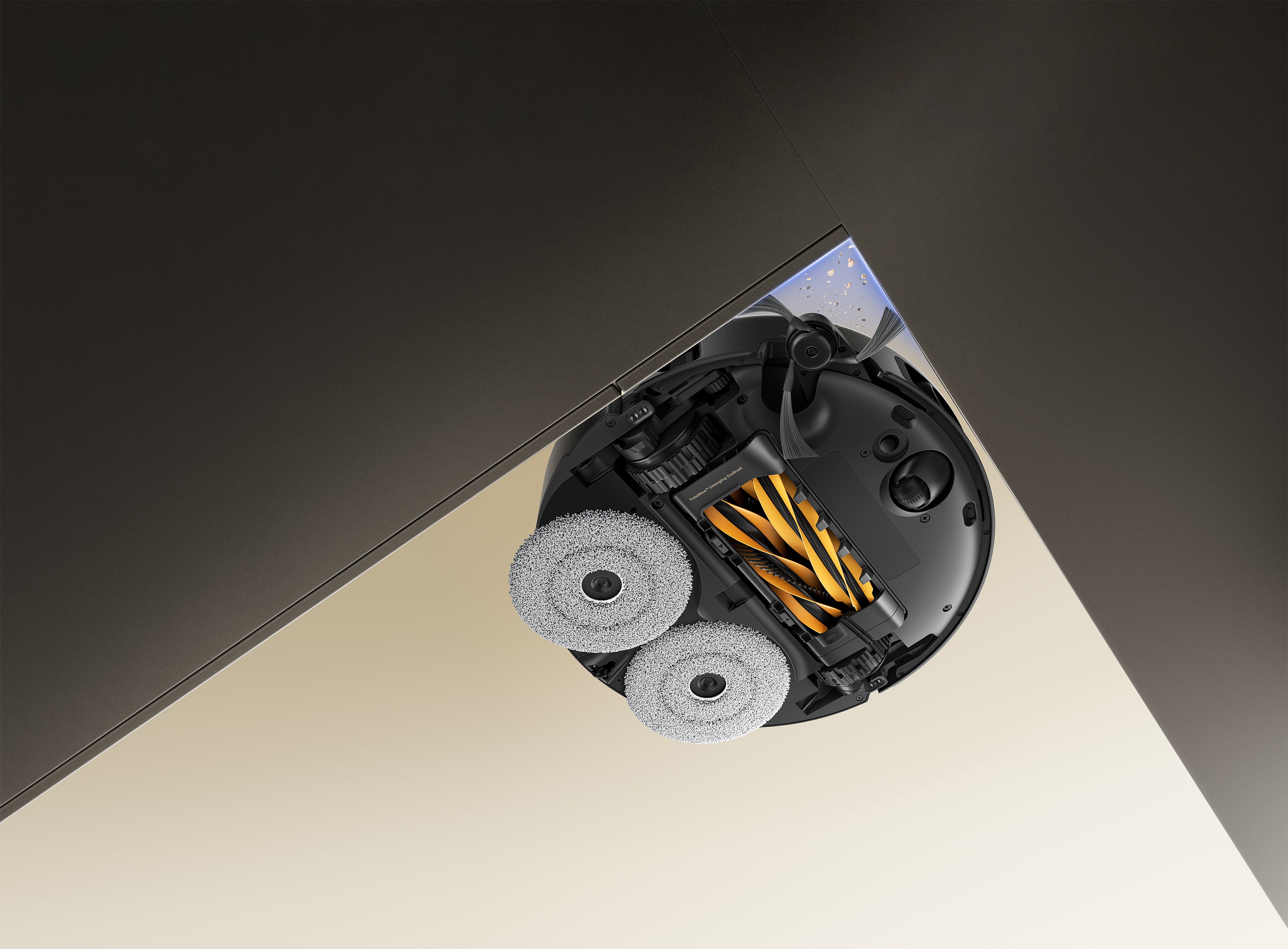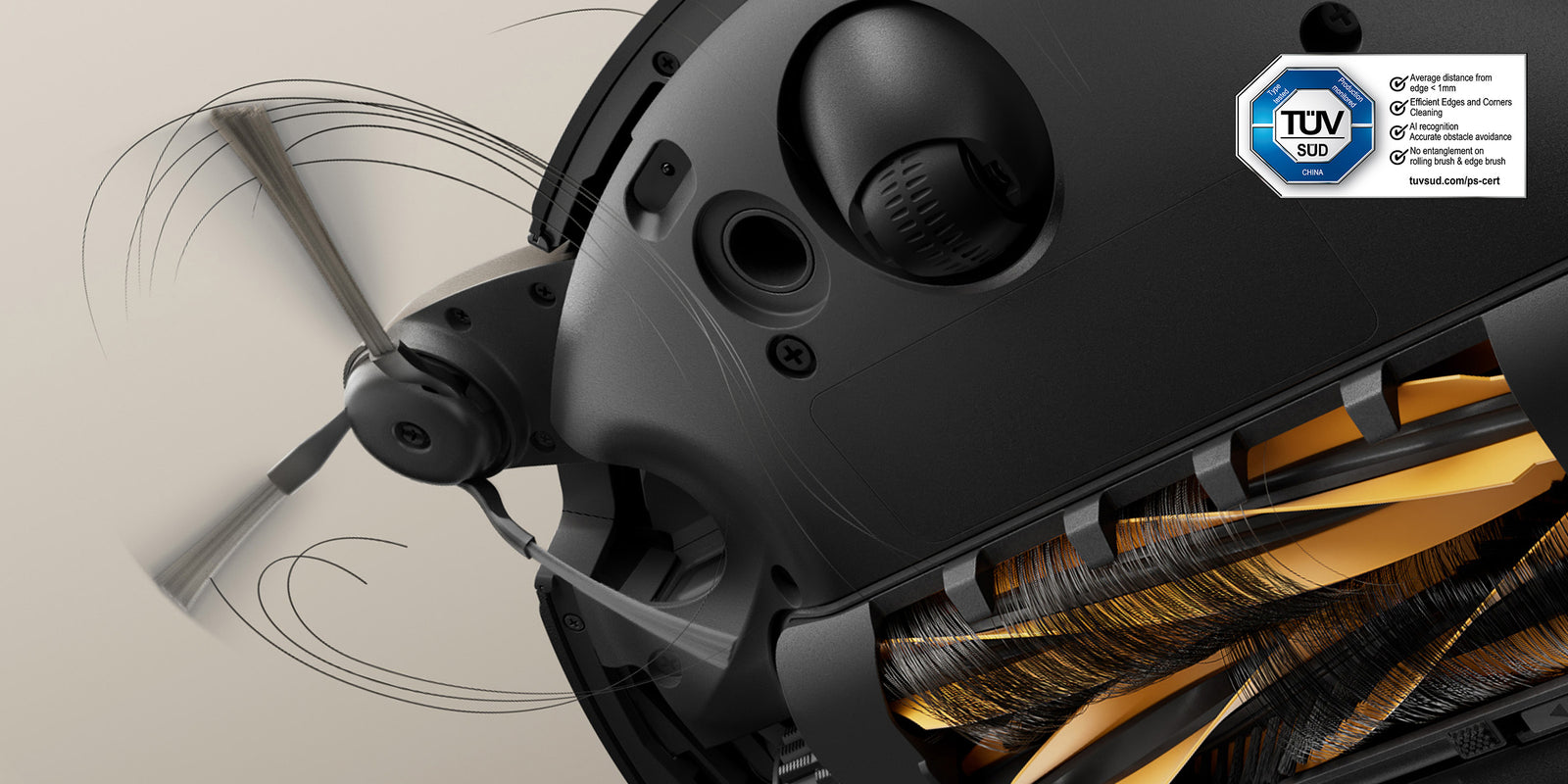 StepMaster™ System features robotic retractable legs that can lift the chassis, allowing it to easily cross over steps, thresholds, door tracks, U-shaped furniture legs, and small obstacles up to 6cm* high. It navigates complex home environments with ease for thorough cleaning and effortless return.