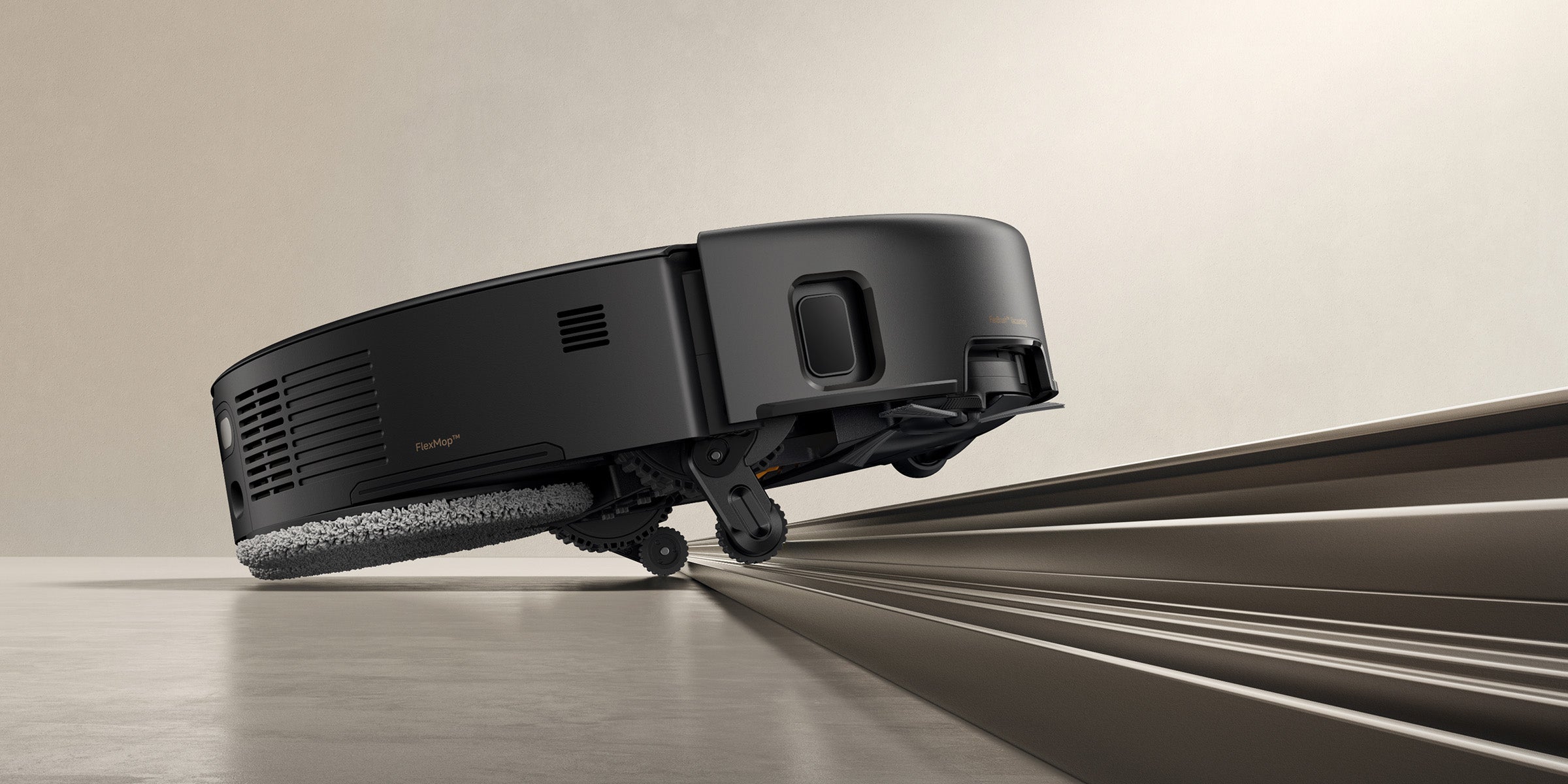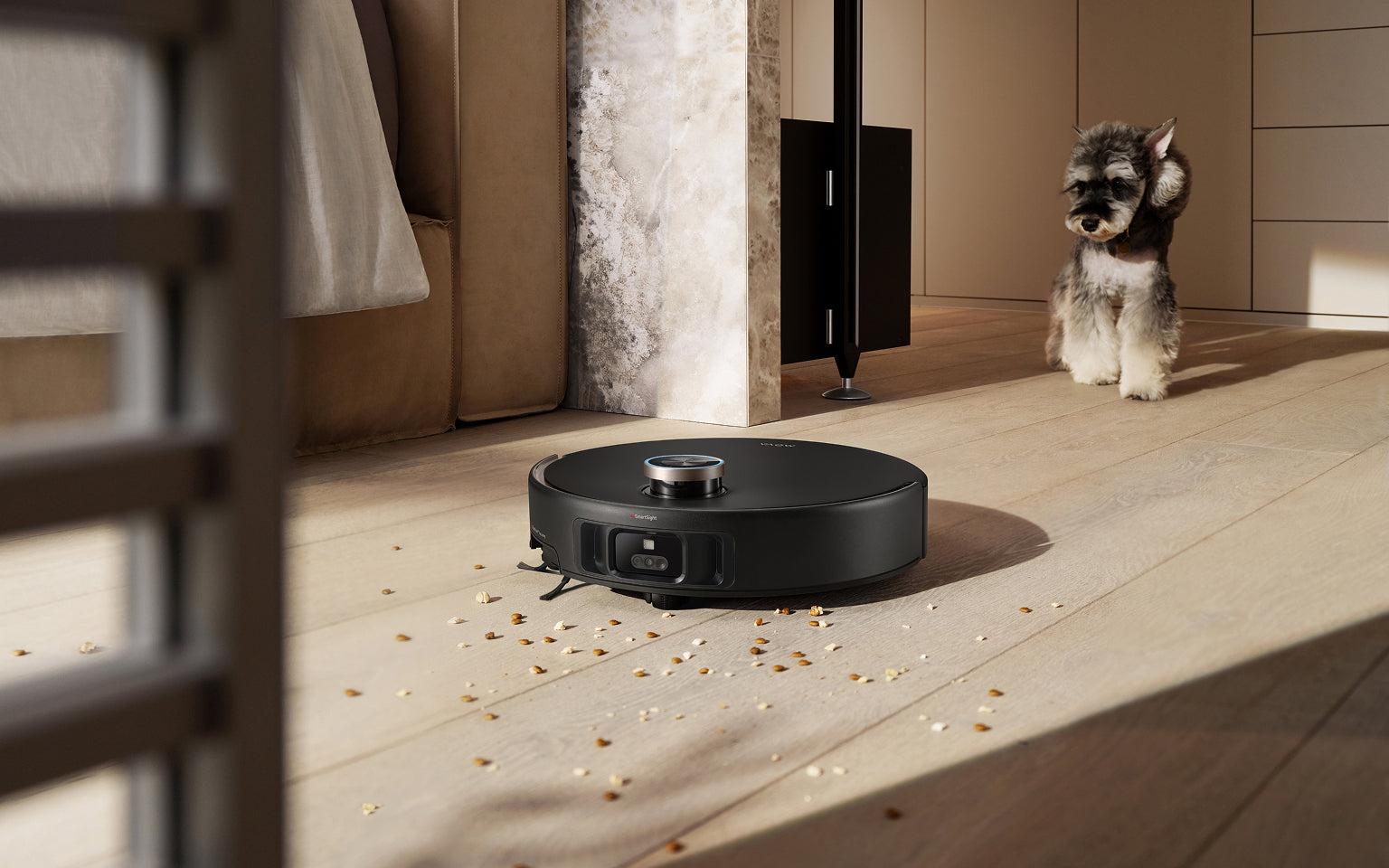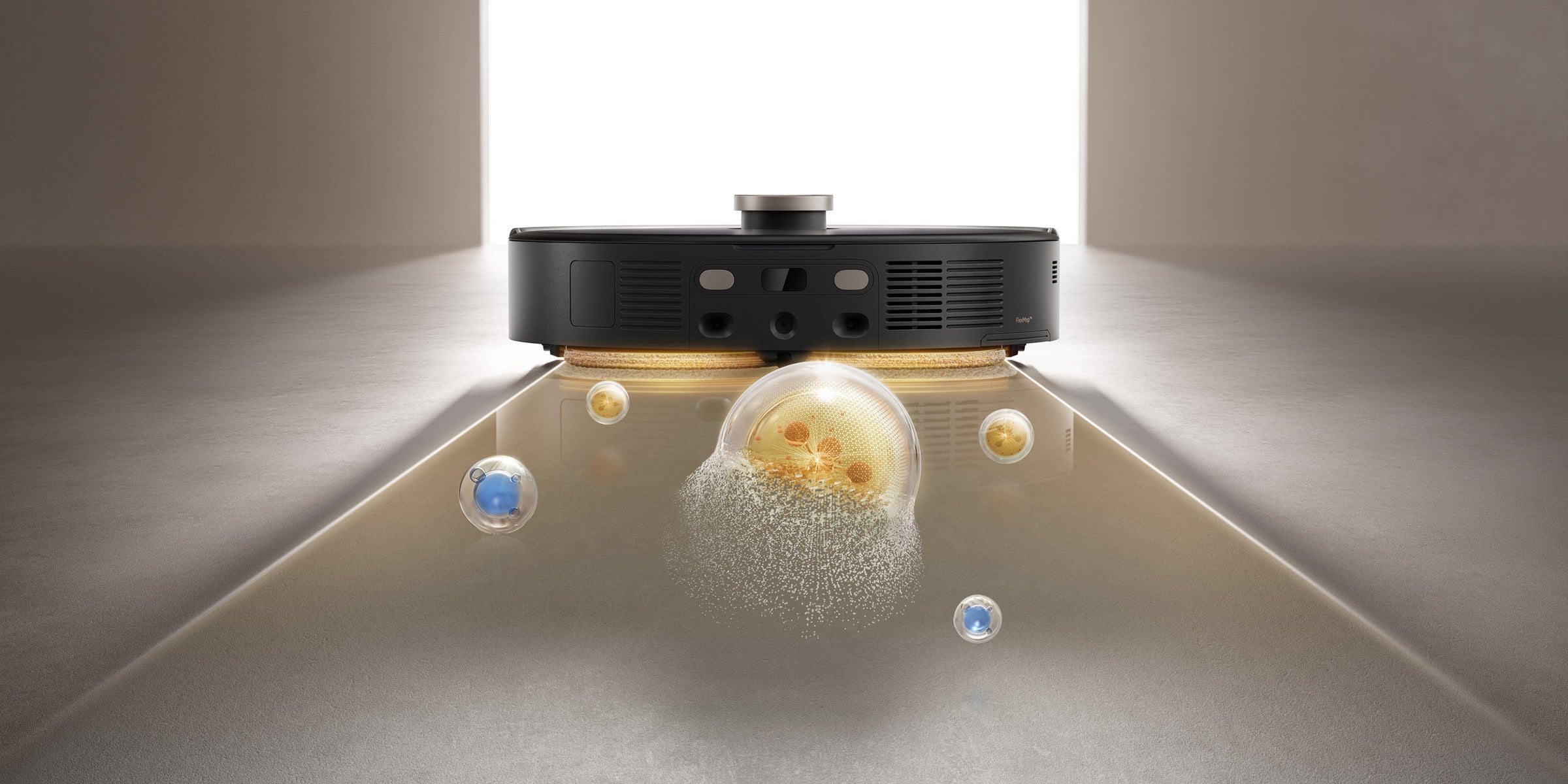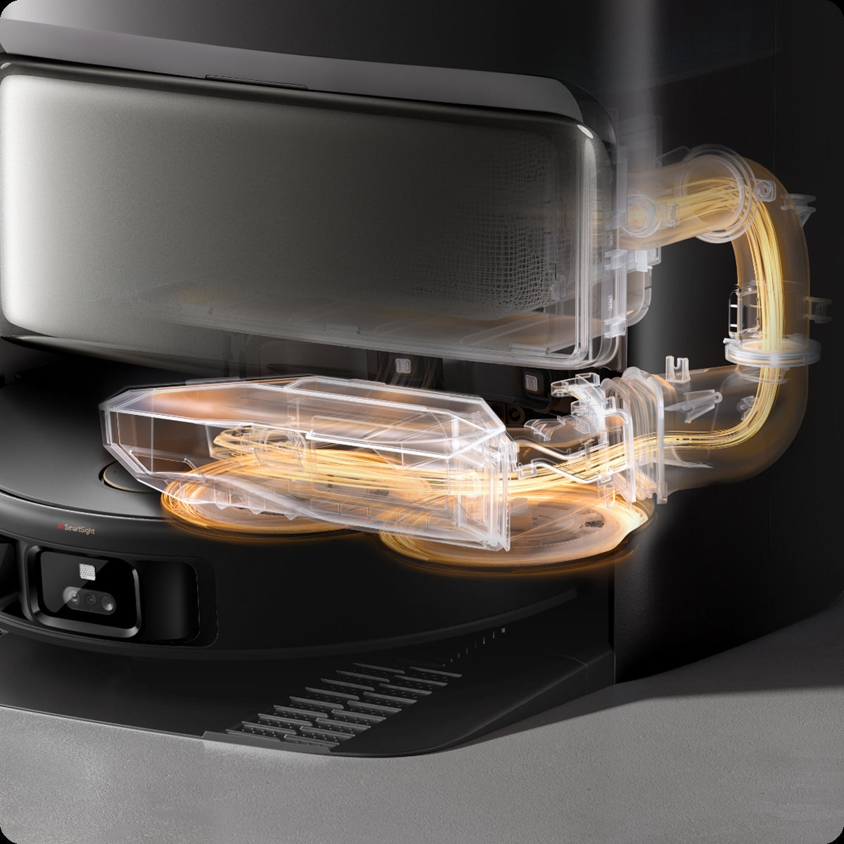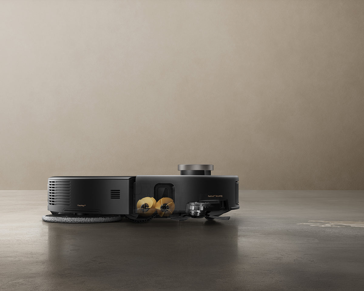 StepMaster™ System features robotic retractable legs that can lift the chassis, allowing it to easily cross over steps, thresholds, door tracks, U-shaped furniture legs, and small obstacles up to 6cm* high. It navigates complex home environments with ease for thorough cleaning and effortless return.