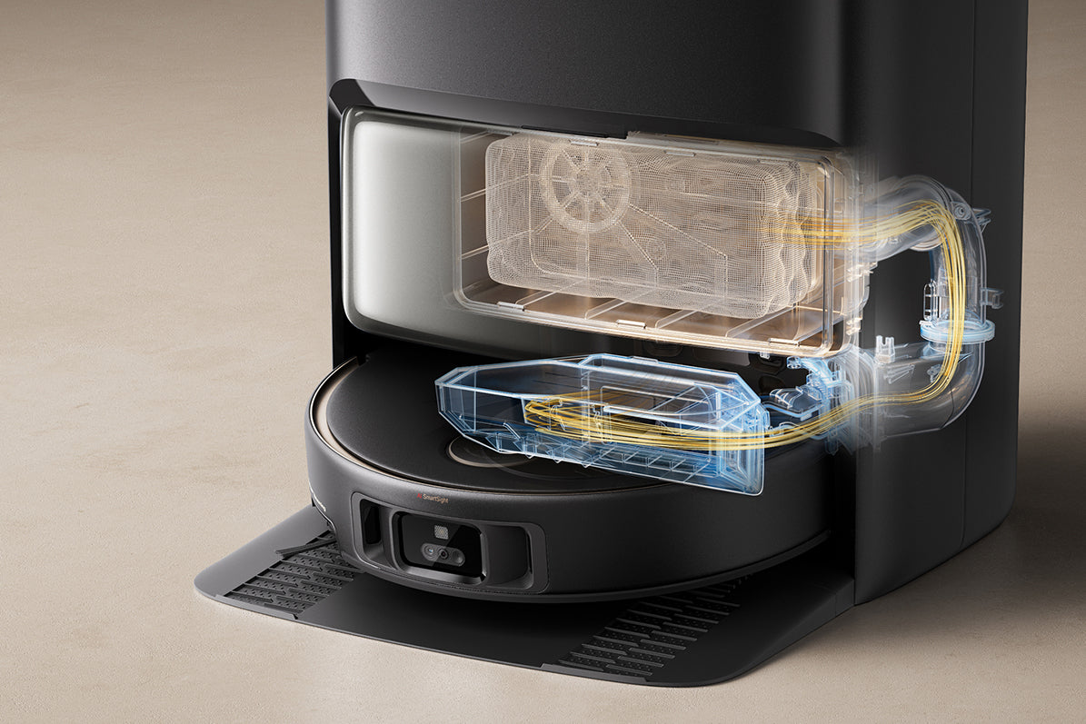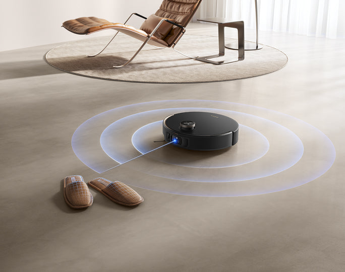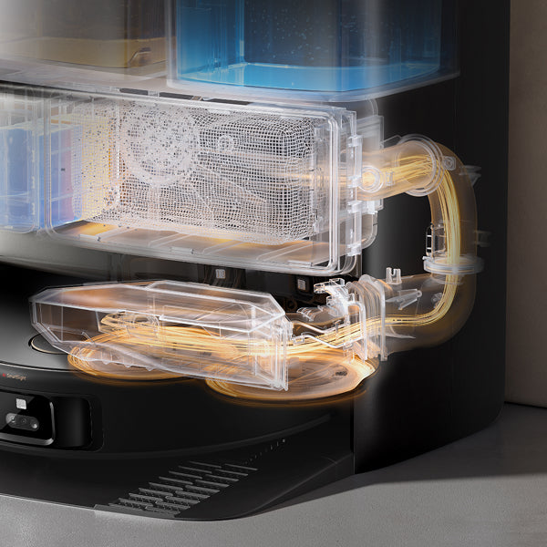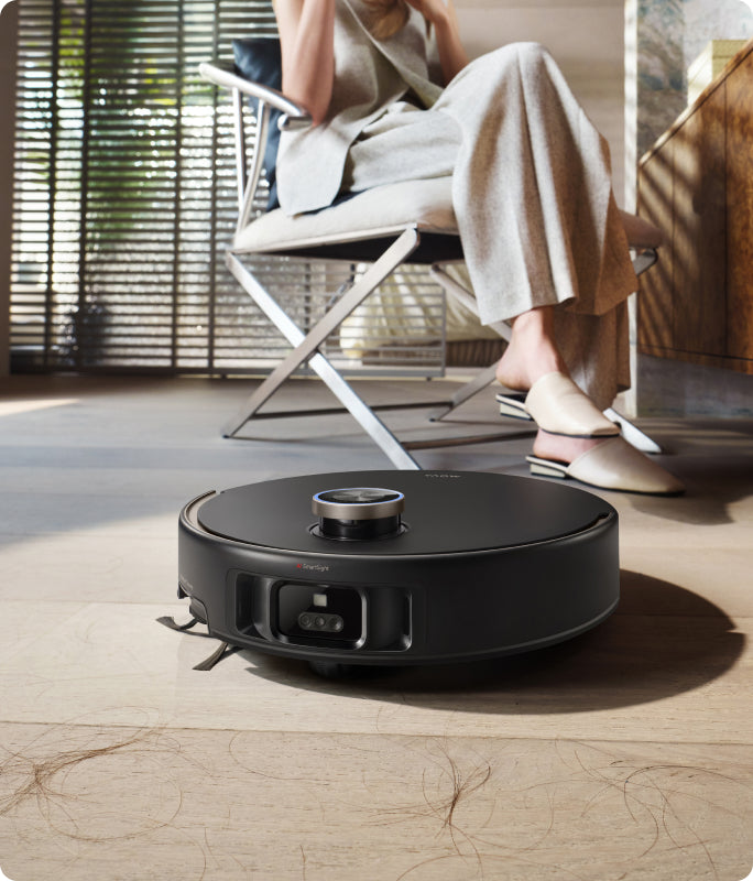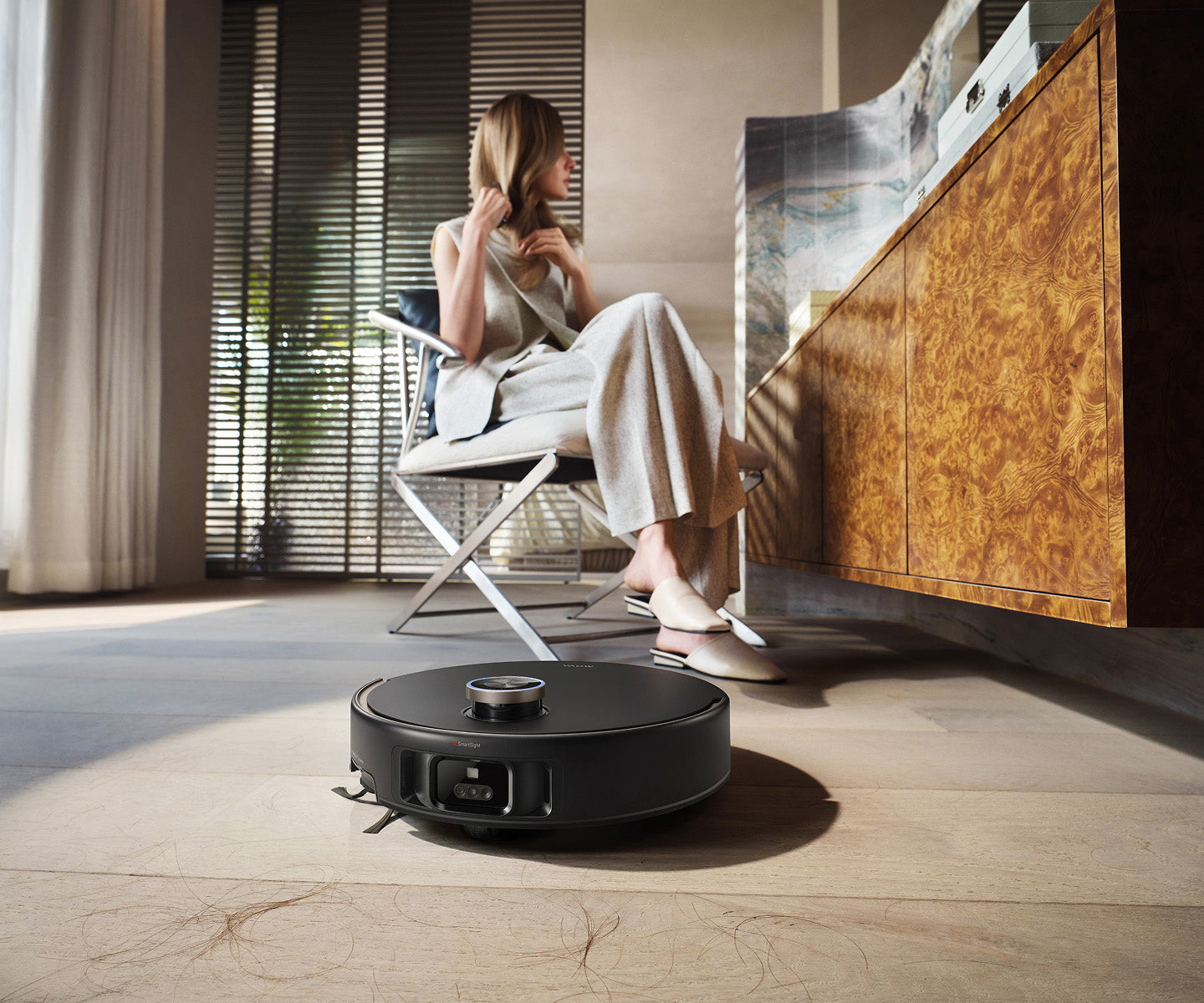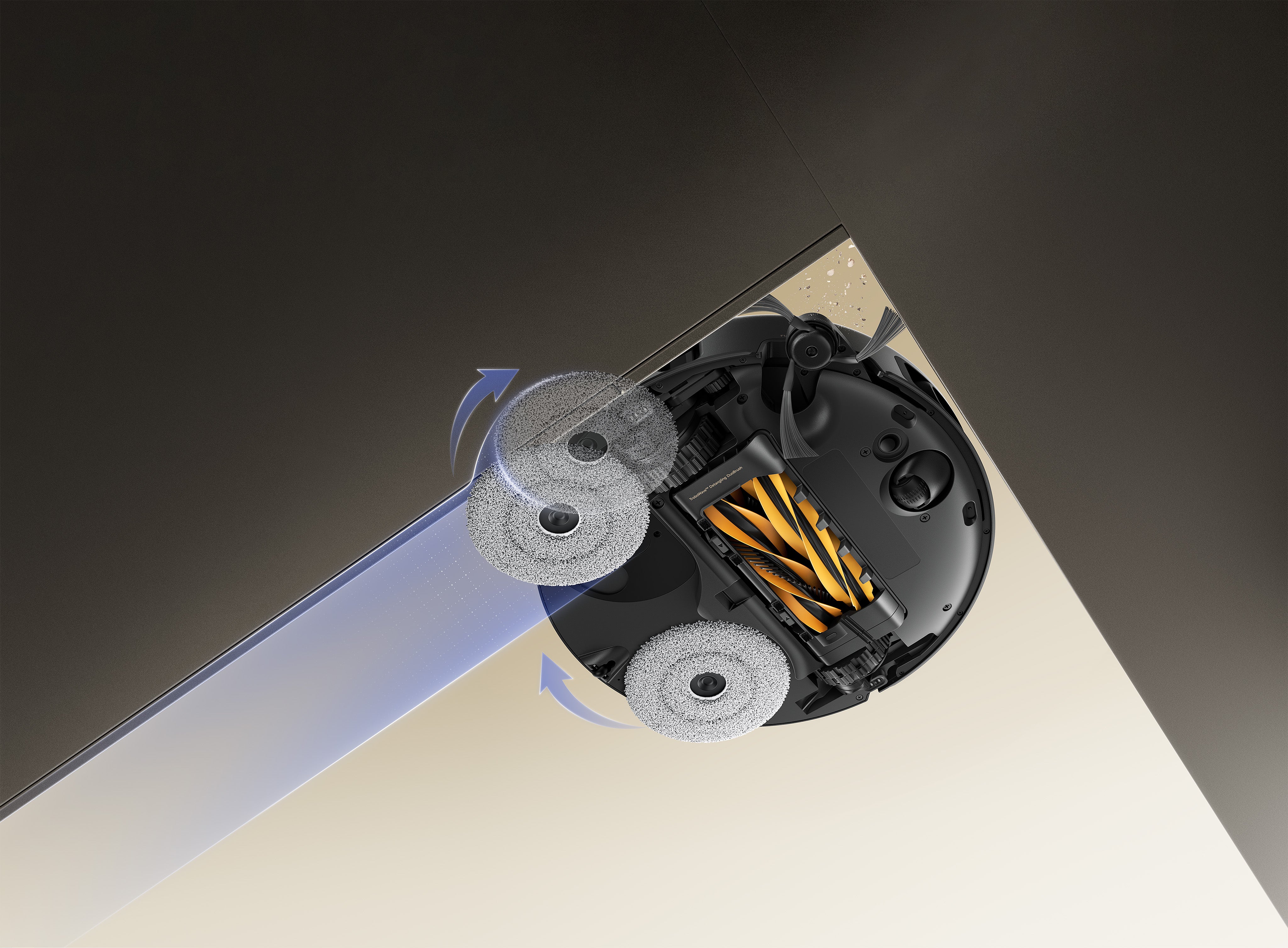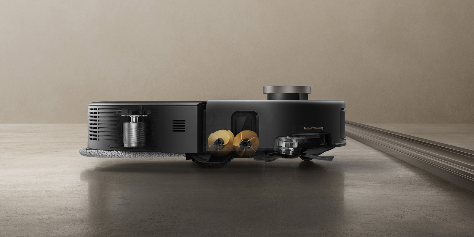 StepMaster™ System features robotic retractable legs that can lift the chassis, allowing it to easily cross over steps, thresholds, door tracks, U-shaped furniture legs, and small obstacles up to 6cm* high. It navigates complex home environments with ease for thorough cleaning and effortless return.