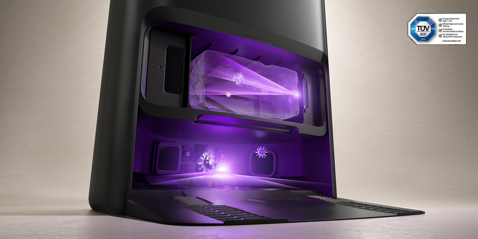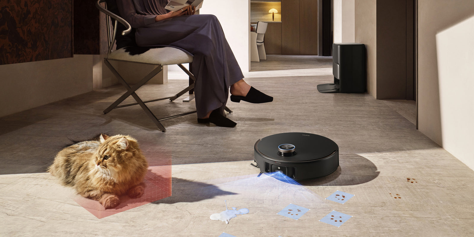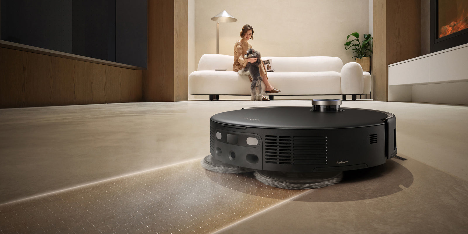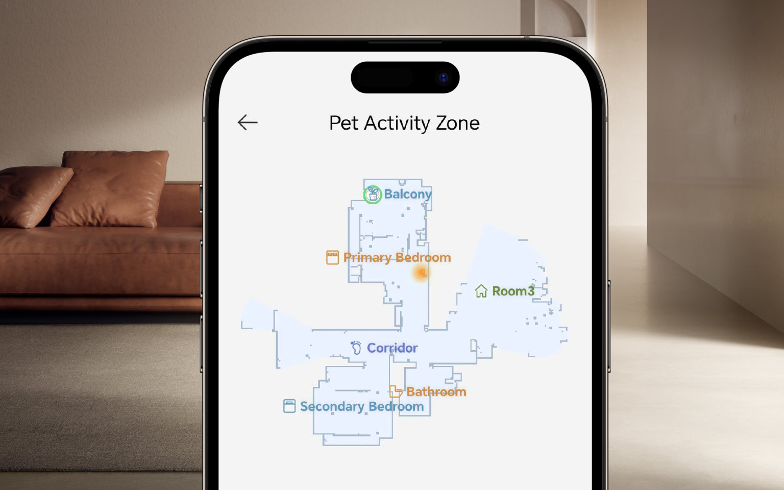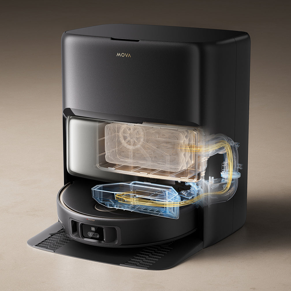 StepMaster™ System features robotic retractable legs that can lift the chassis, allowing it to easily cross over steps, thresholds, door tracks, U-shaped furniture legs, and small obstacles up to 6cm* high. It navigates complex home environments with ease for thorough cleaning and effortless return.