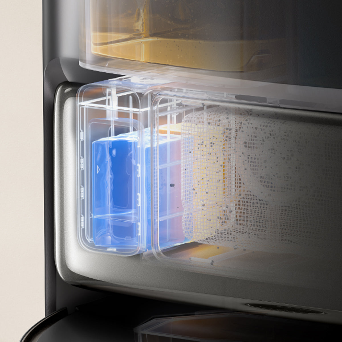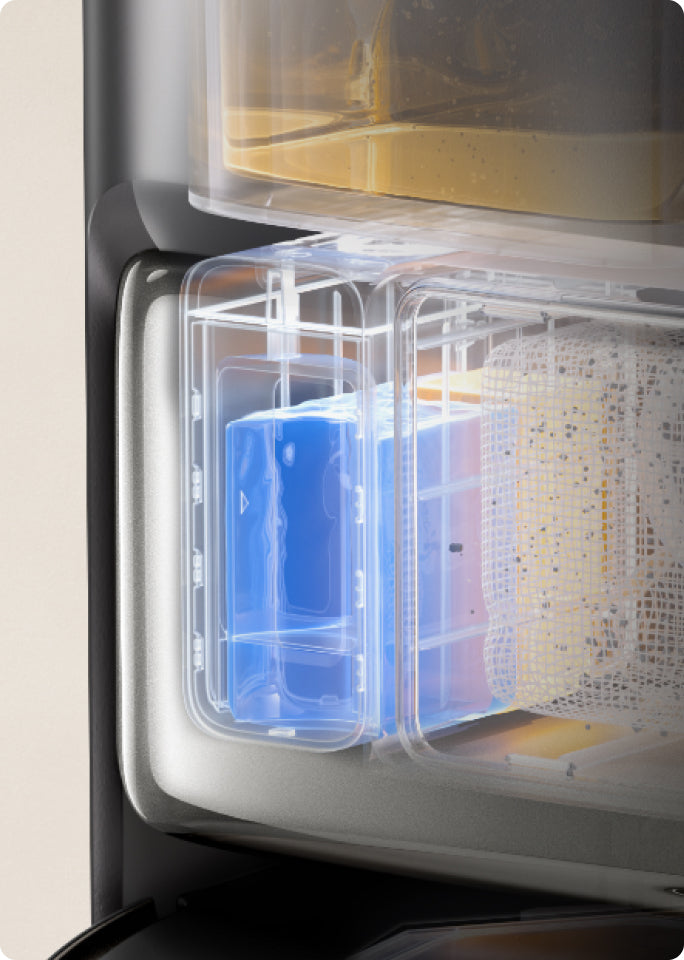 Innovatief ontworpen, met twee schoonmaakmiddelcontainers: één voor het algemene schoonmaakmiddel en de andere voor de geurverdrijver van N-Soya Morpholine, die geurtjes van huisdieren bij de bron verwijdert en ze niet alleen maskeert. Kies de reinigingsmodus en het reinigingsmiddel van uw voorkeur, via de reinigings-app.
