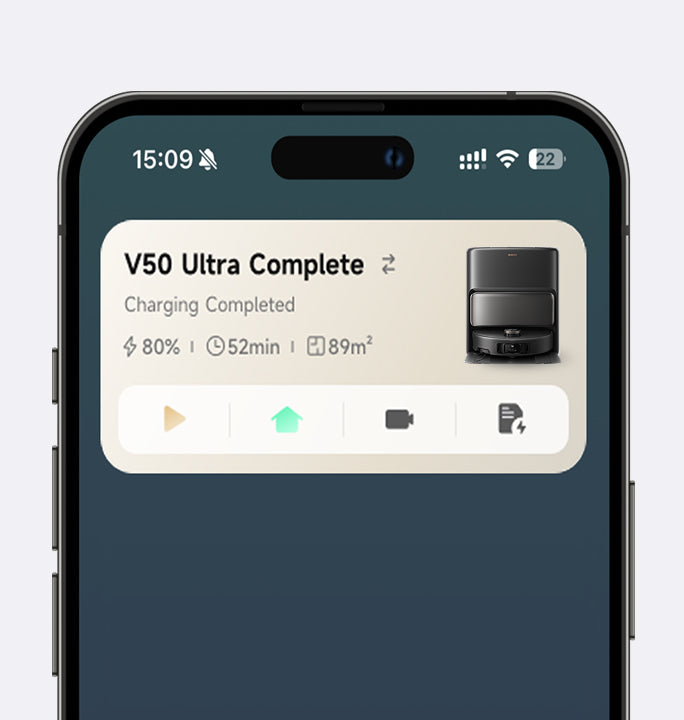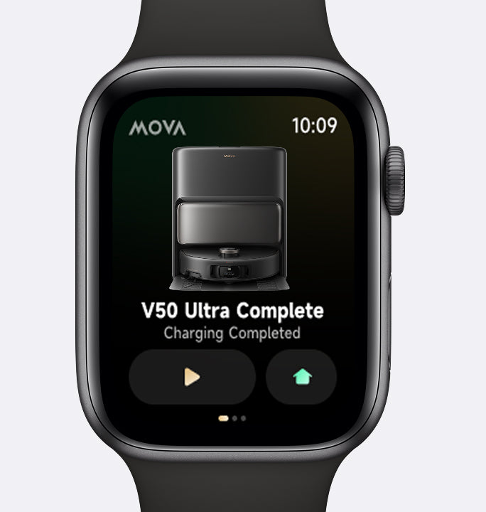 Bedien de V50 Ultra Complete rechtstreeks vanaf uw Apple Watch, waardoor u op een nieuwe, eenvoudige manier uw reiniging kunt beheren.