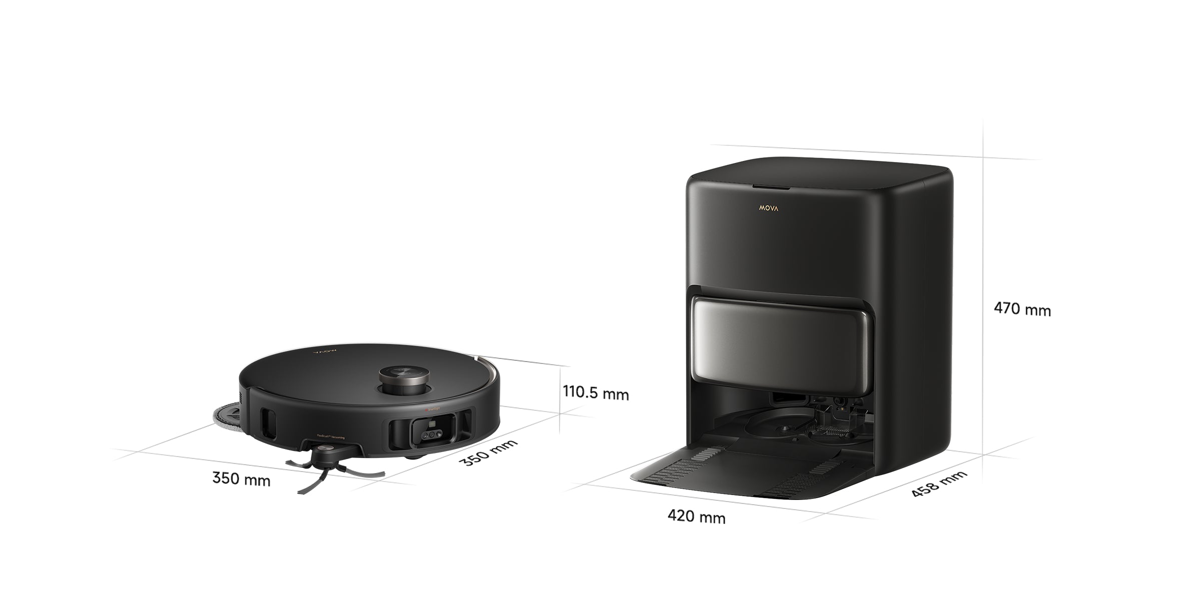 Afmetingen robotstofzuiger 350 x 350 x 89,5 mm(DToF ingeschoven)