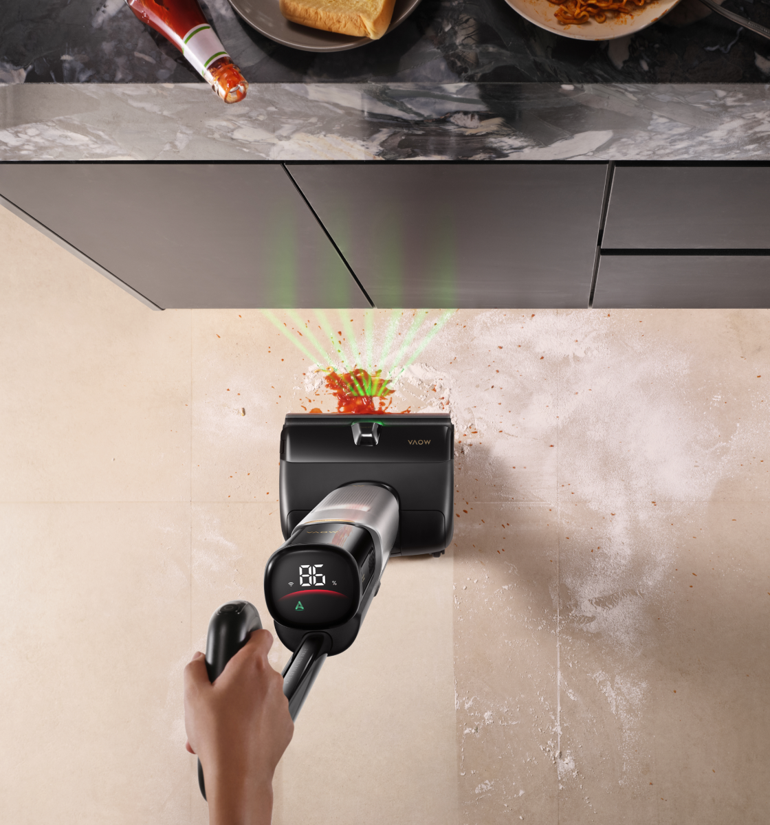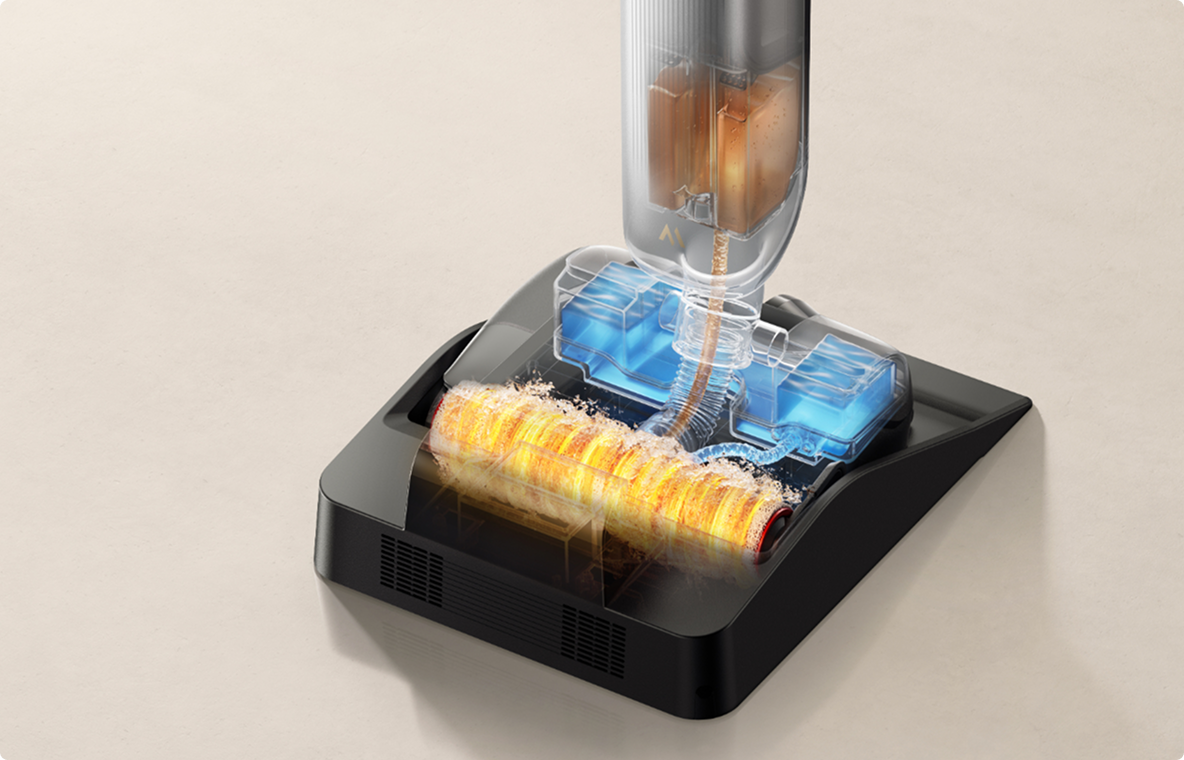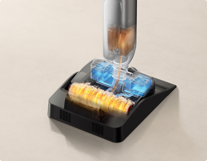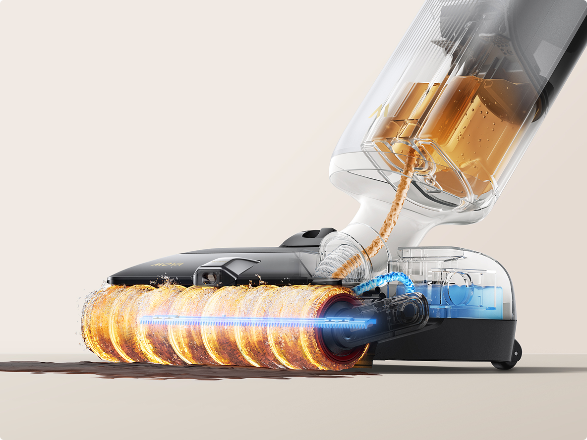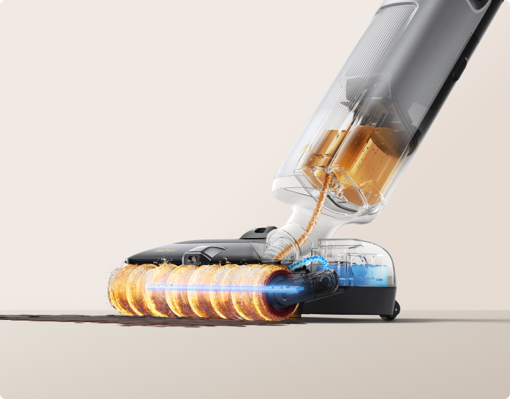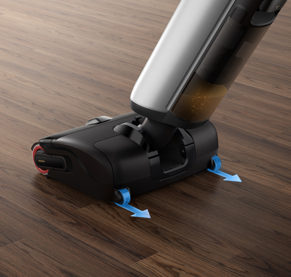 De krachtige motor levert een sterke zuigkracht, in combinatie met een snelle rolborstel die zowel nat als droog vuil vakkundig aanpakt.
