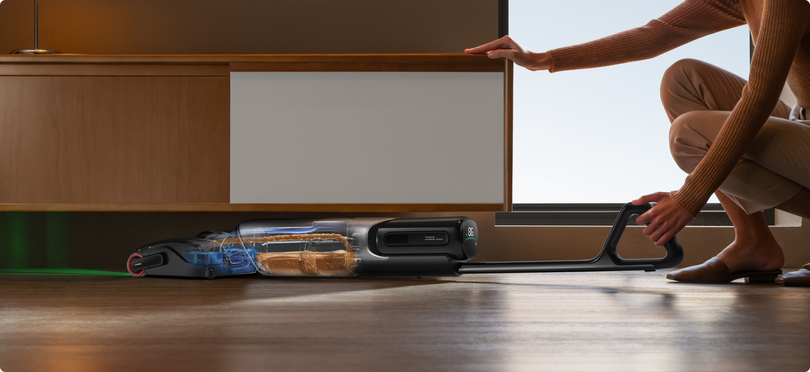 Maakt natuurlijke bewegingen rond meubelpoten en hoeken mogelijk, voor betere controle.