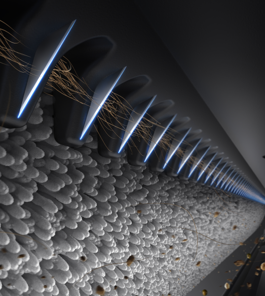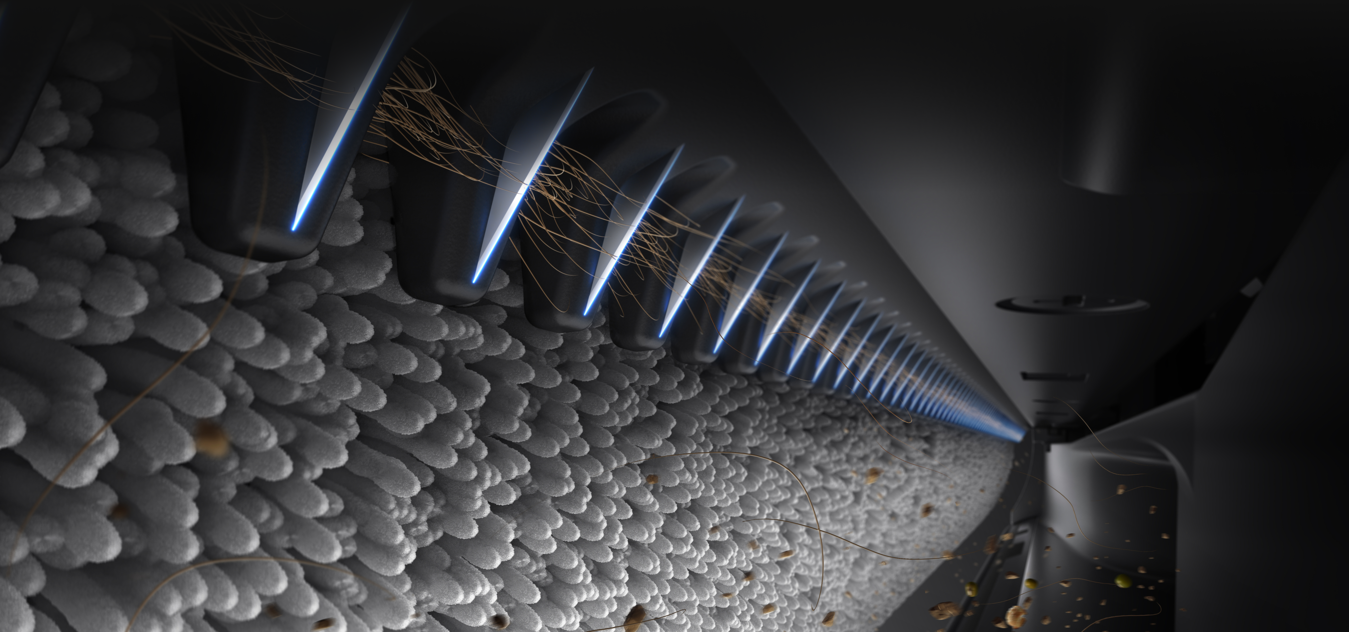De borstel met twee randen garandeert een perfecte schoonmaak door geen tussenruimten langs muren en plinten vrij te houden en stof en vuil vakkundig te verwerken, tot een opmerkelijke 0 mm* van de rand.